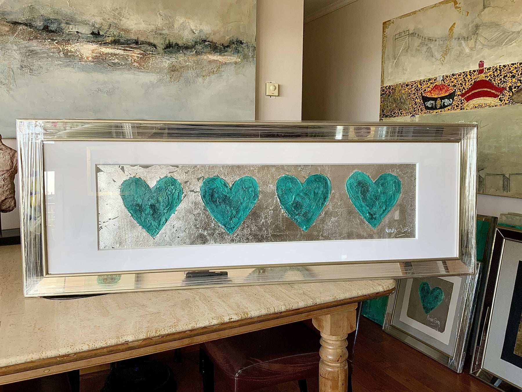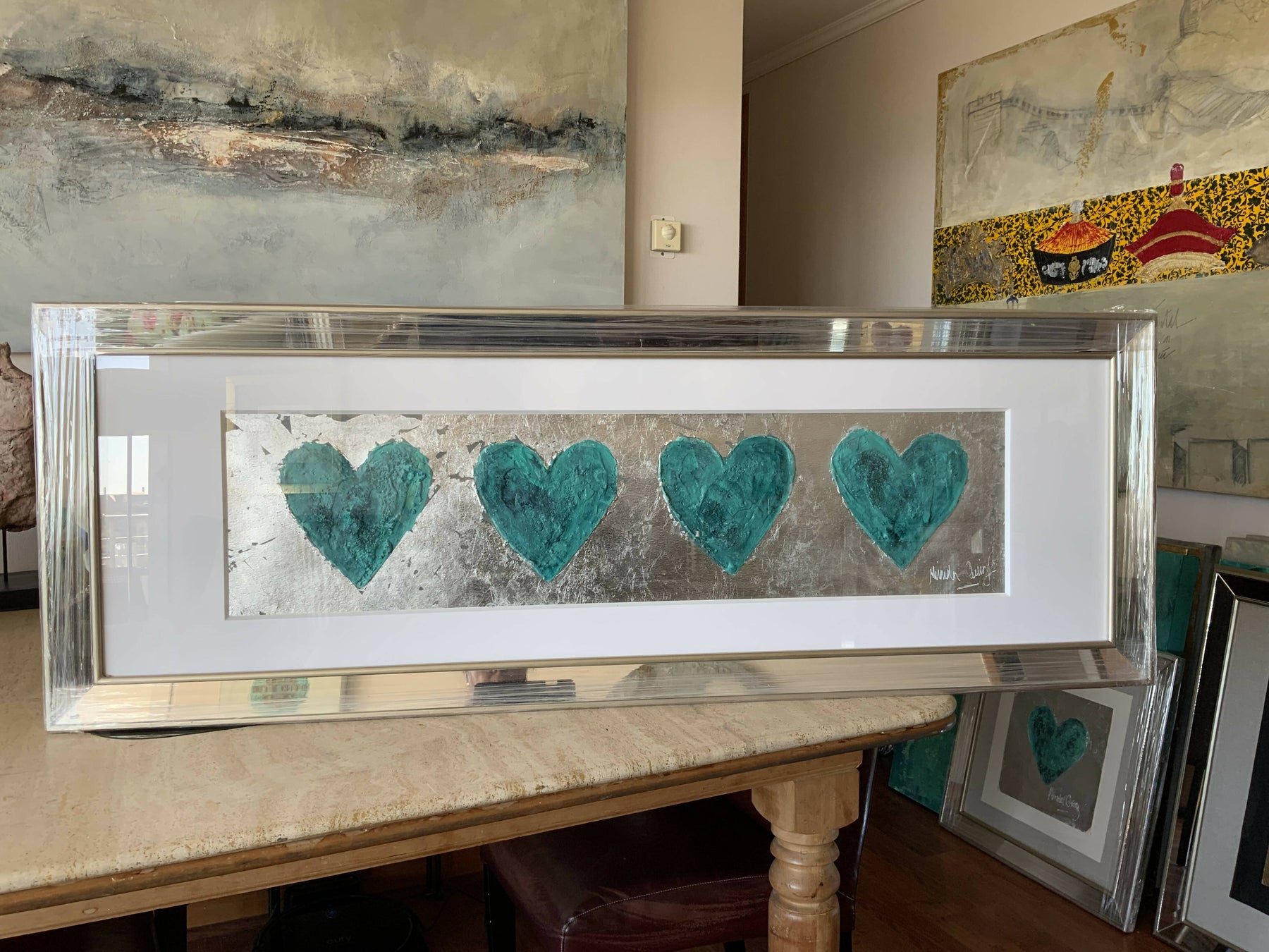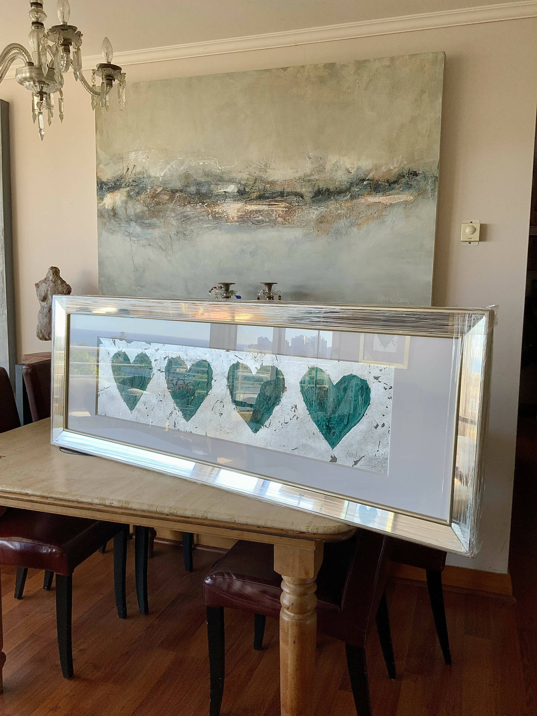 Original sobre esparto de 300 grs, técnica mixta, acrílico, tintas, textura con pasta de polvo de cuarzo, lámina Plata.