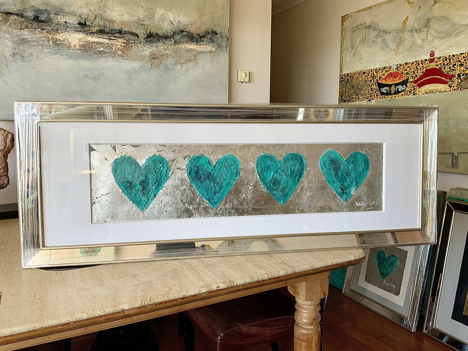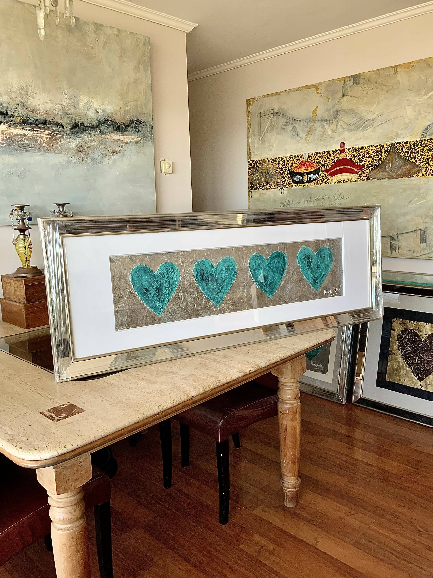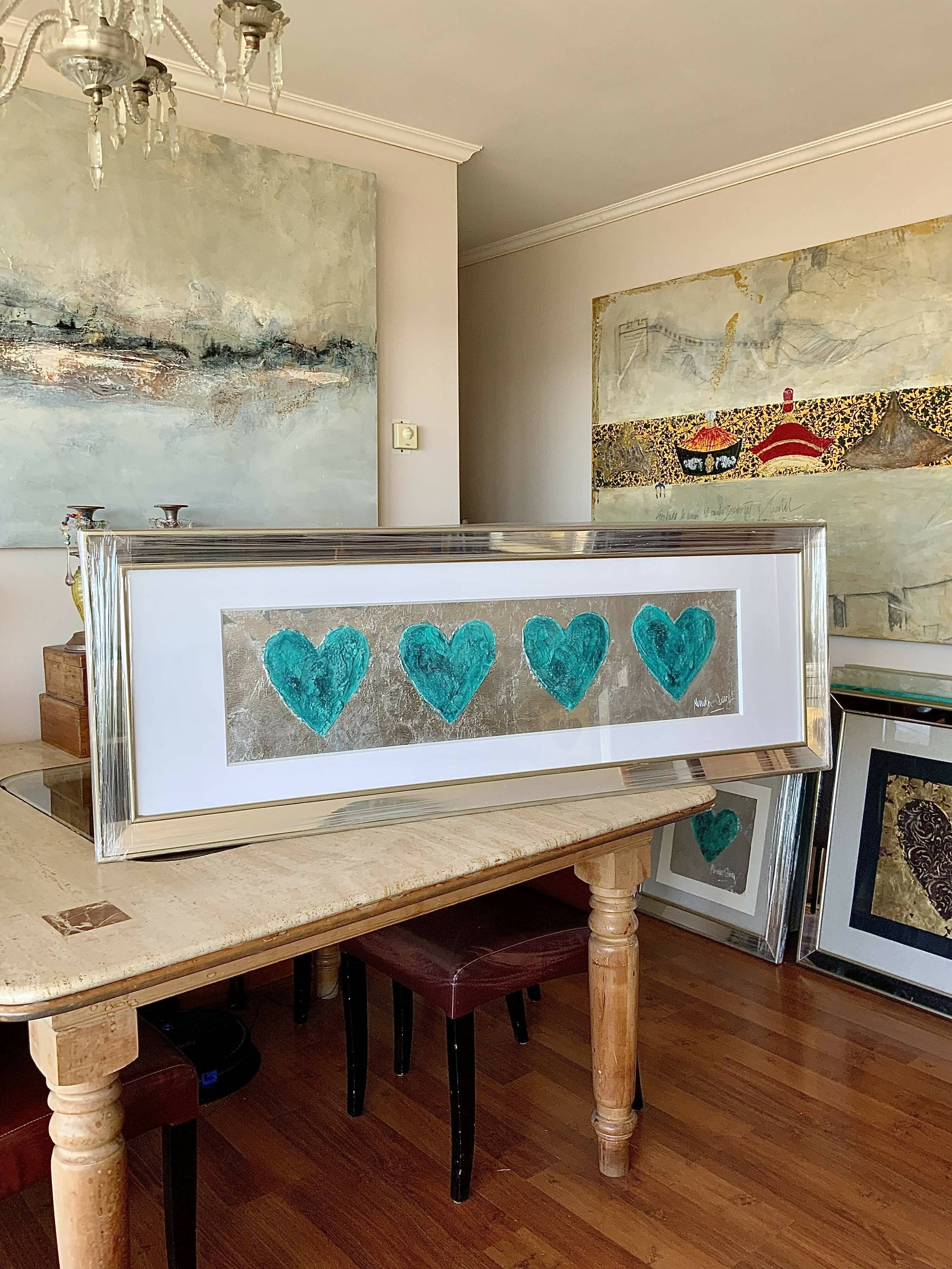 Original sobre esparto de 300 grs, técnica mixta, acrílico, tintas, textura con pasta de polvo de cuarzo, lámina Plata.