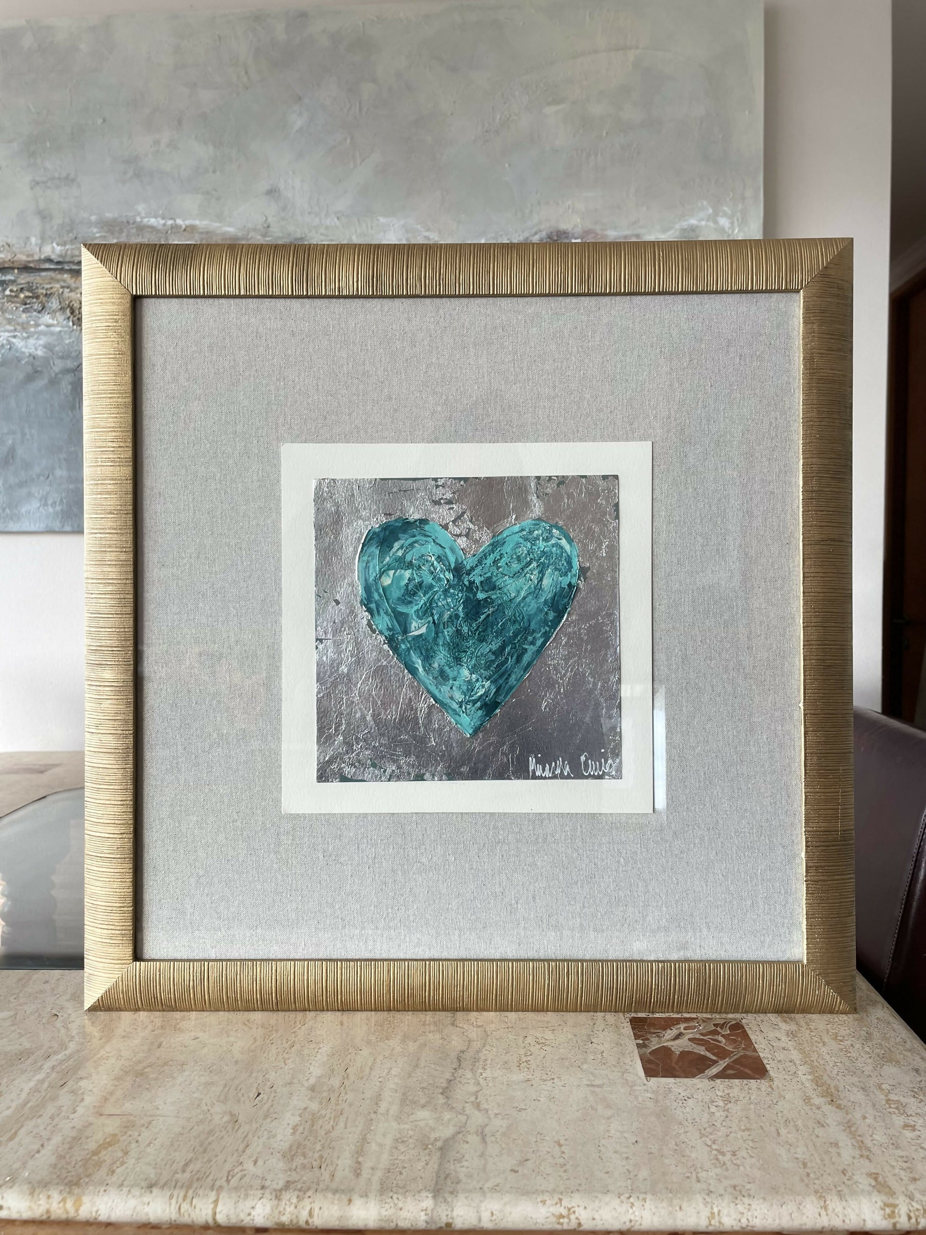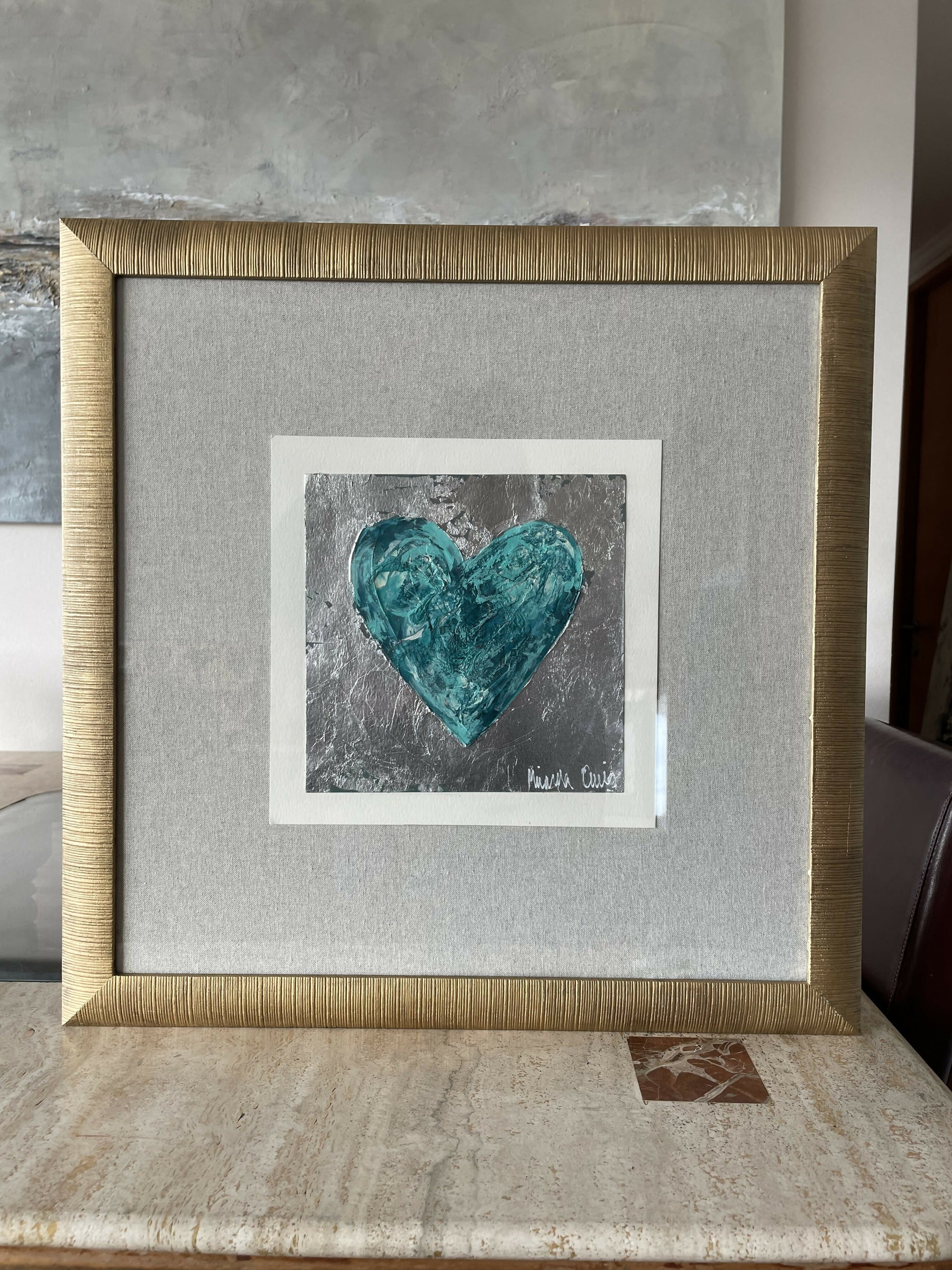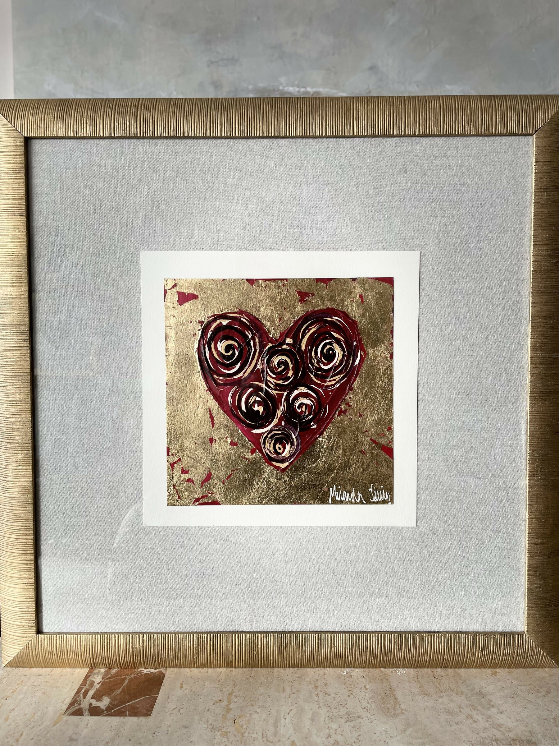 Original sobre esparto de 300 grs, técnica mixta, acrílico, tintas, textura con pasta de polvo de cuarzo, lámina oro o plata, respaldo de lino de cuya.