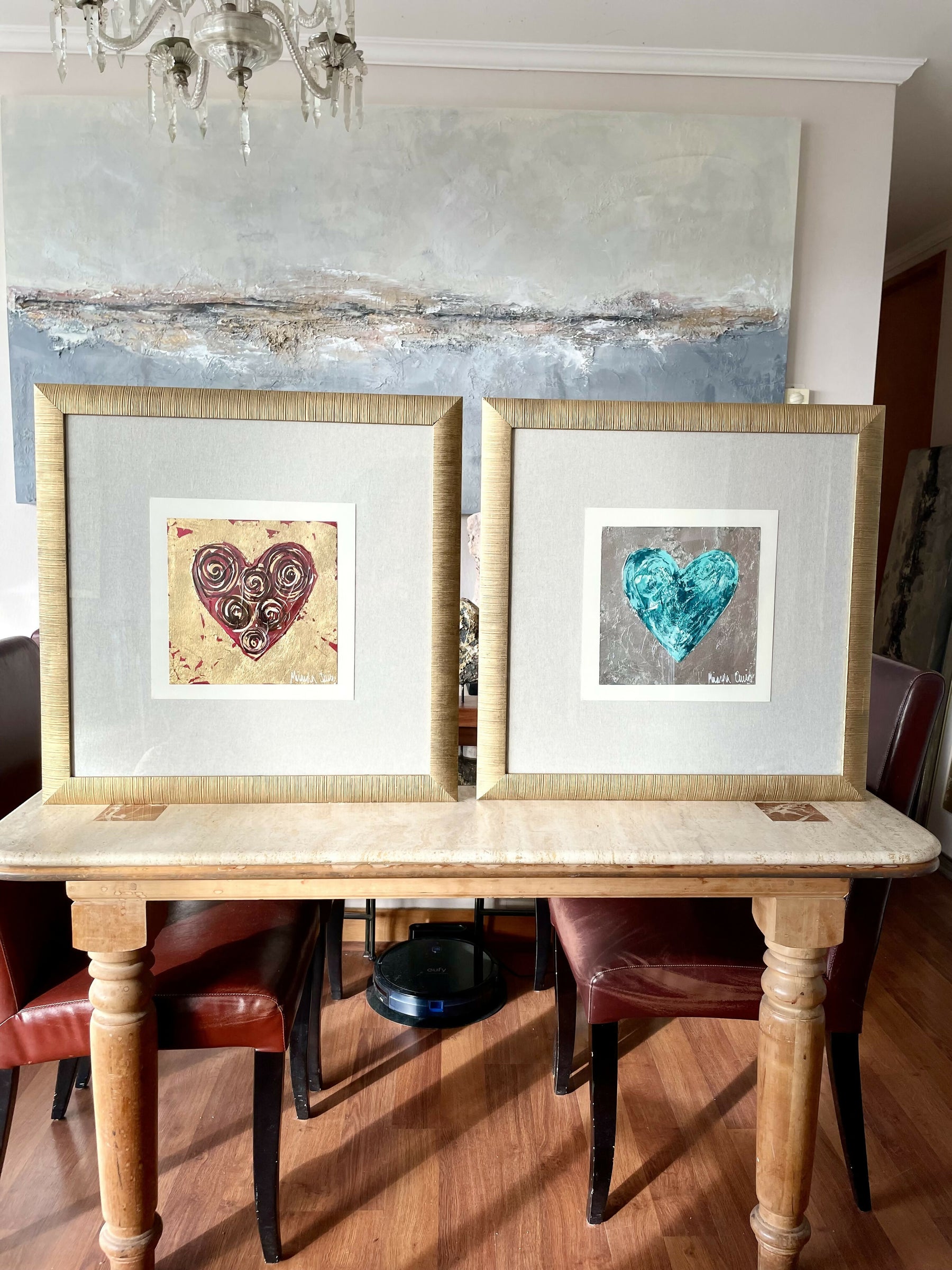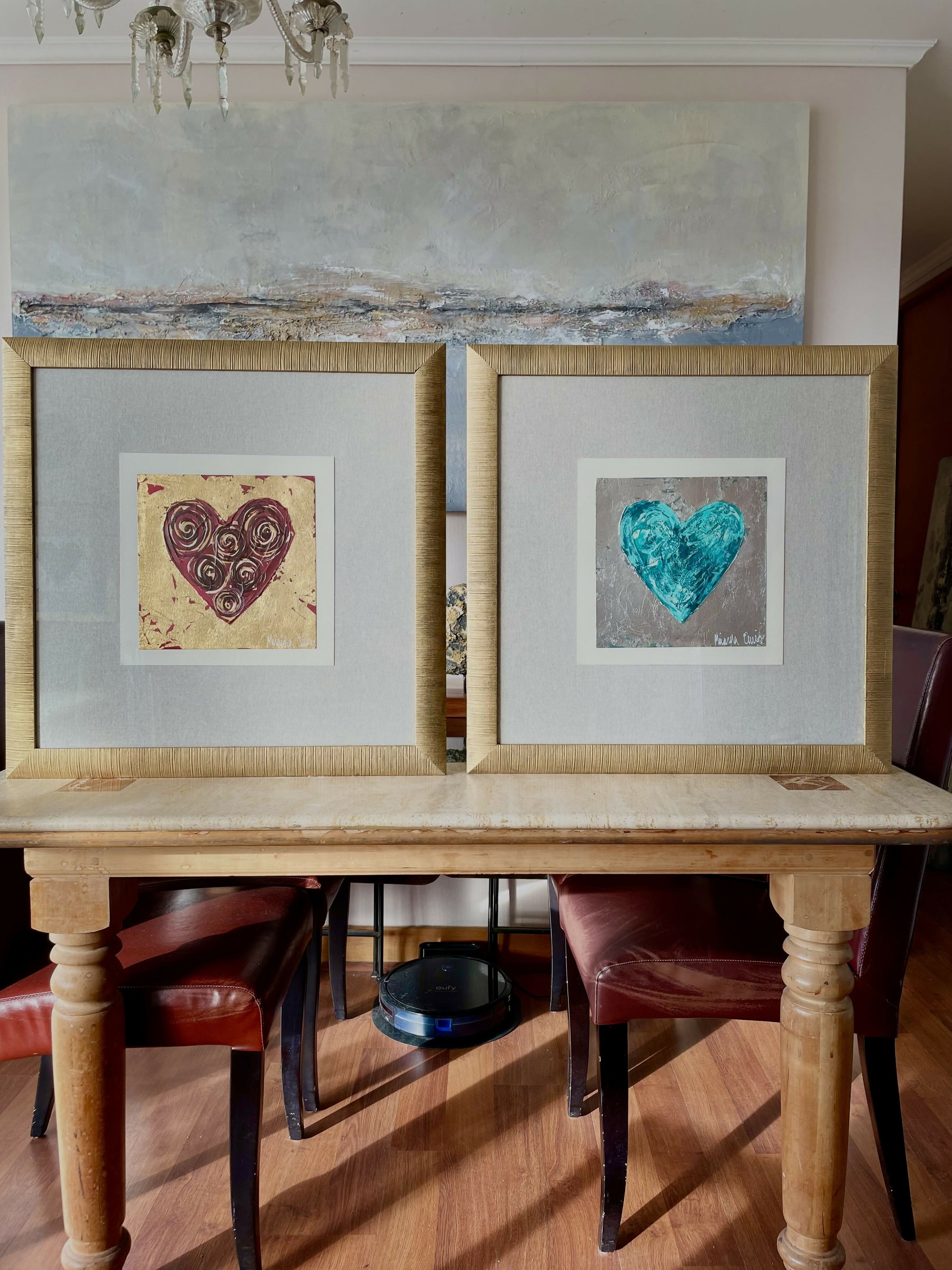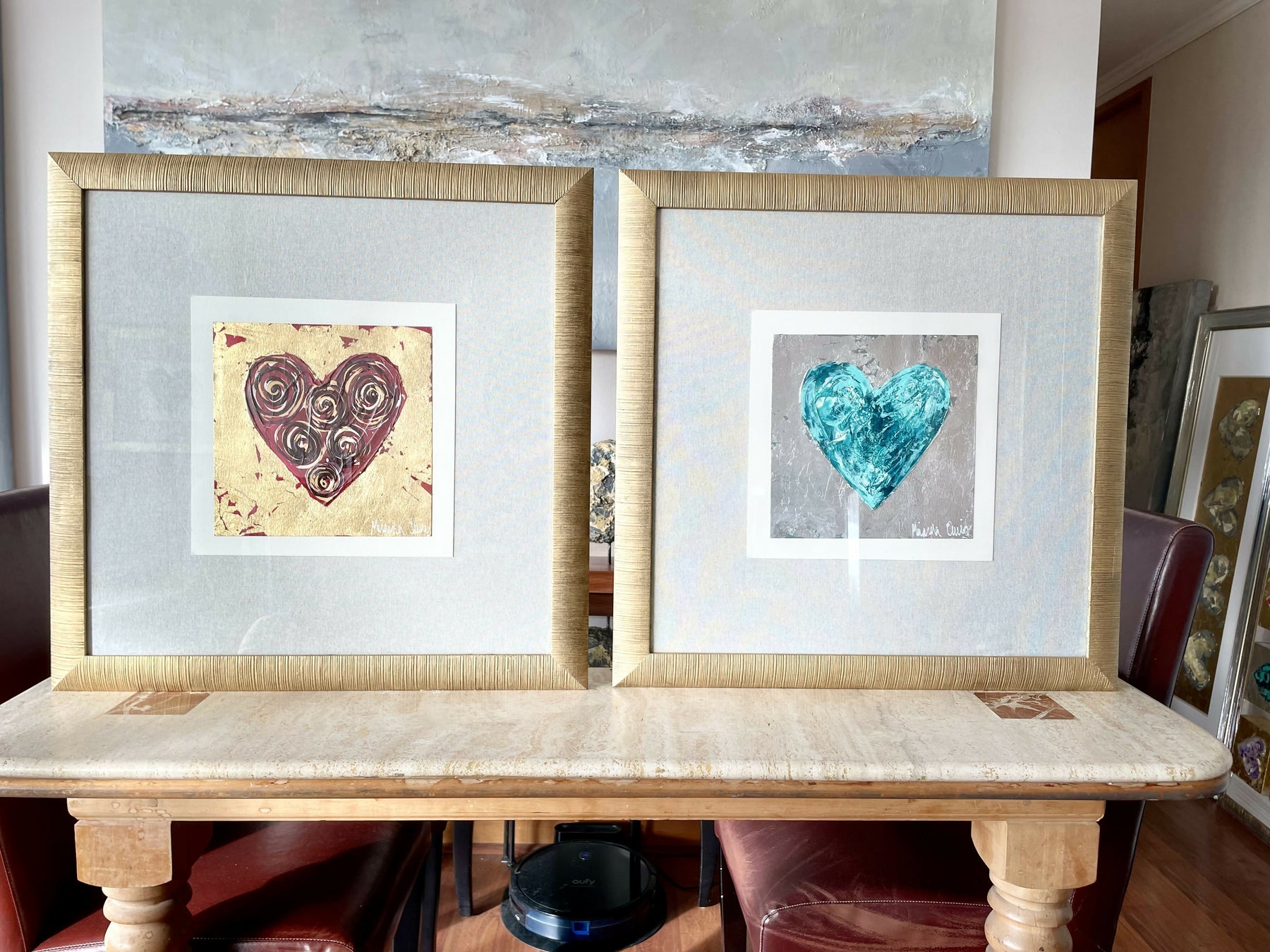 Original sobre esparto de 300 grs, técnica mixta, acrílico, tintas, textura con pasta de polvo de cuarzo, lámina oro o plata, respaldo de lino de cuya.