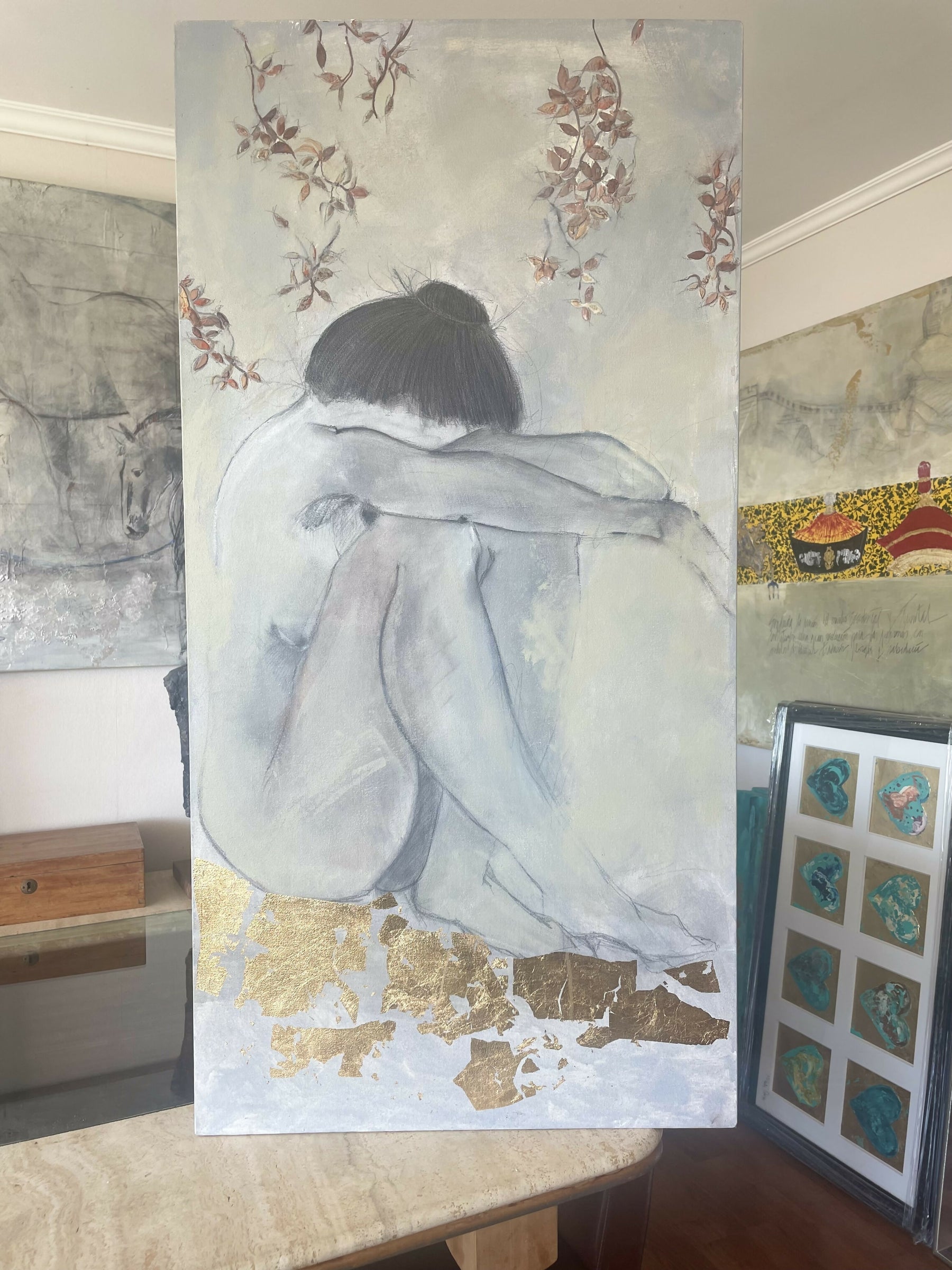 técnica mixta, acrílico, tintas, mina, pastel seco, oleo, texturas con polvo de cuarzo.