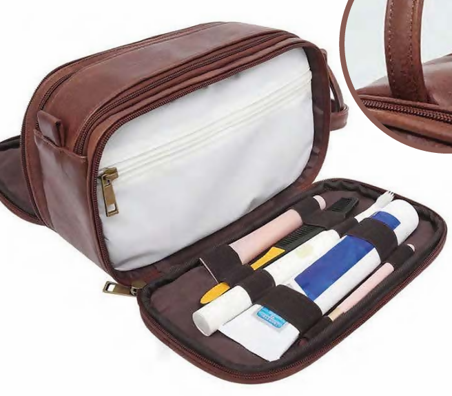 Neceser doble de apertura superior y laterales con cierre con sujetadores elásticos. Bolsillo interno impermeable. Asa reforzada confortable textura al tacto.