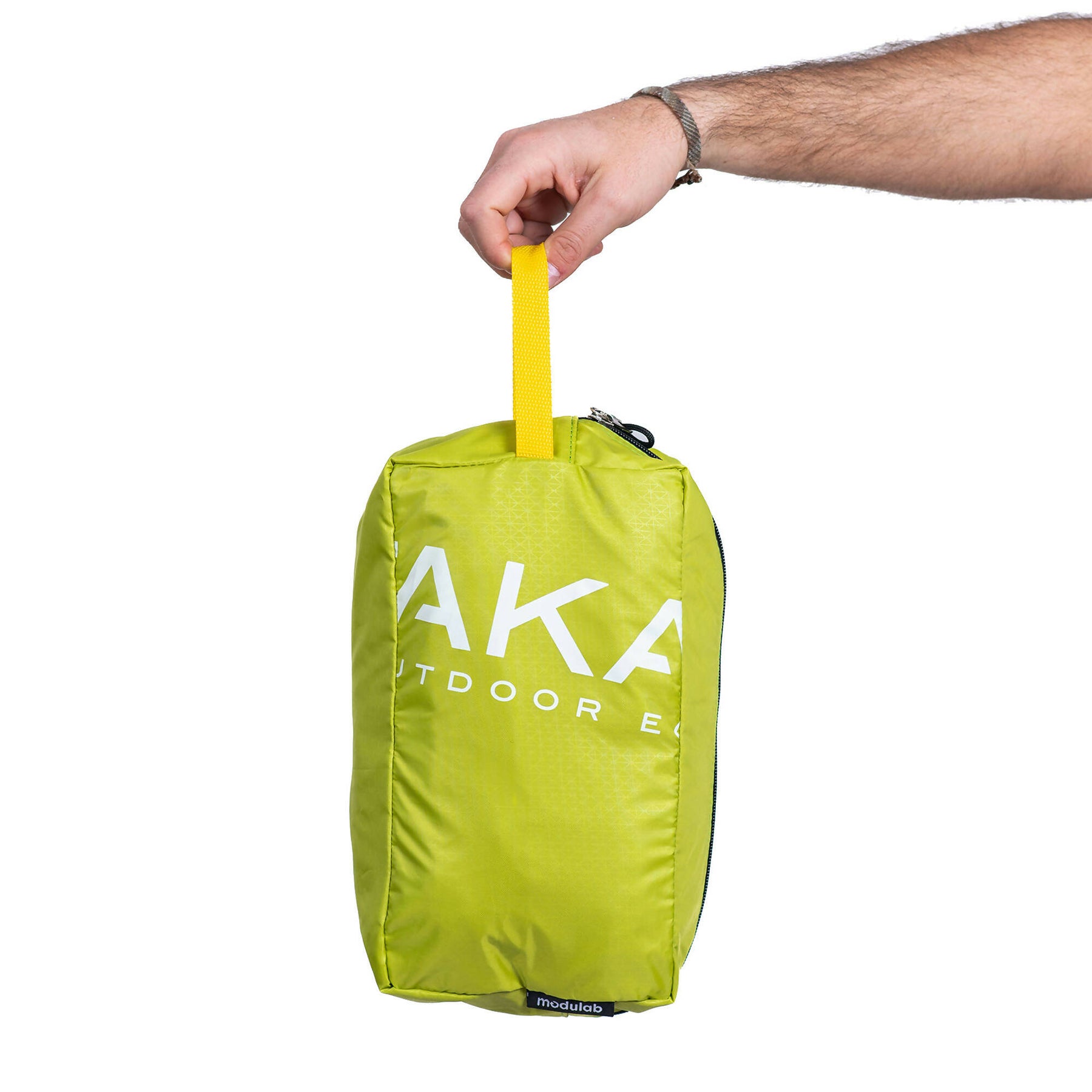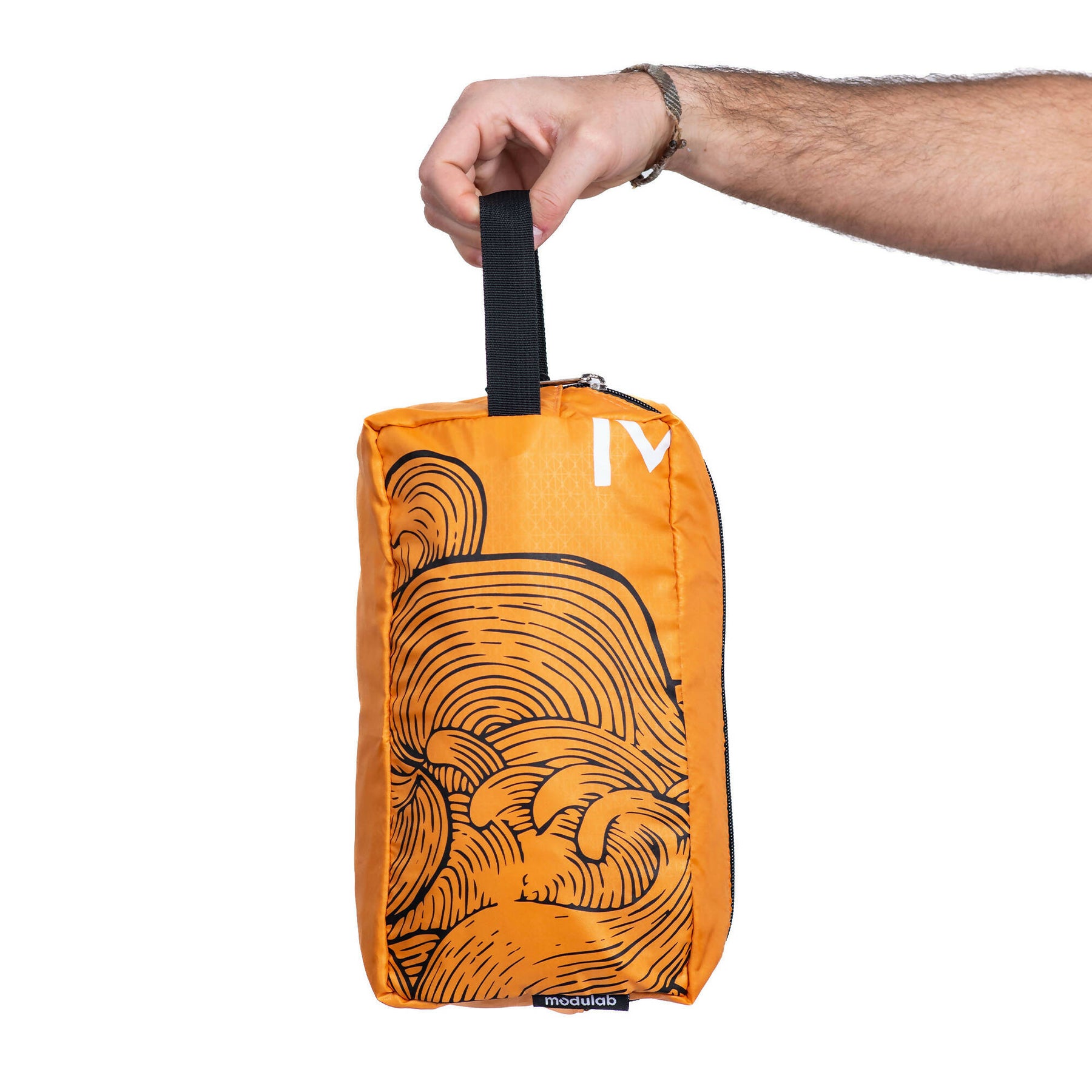 El neceser Mehuin está creado a partir de la reutilización de carpas, por lo que cada tela tiene un estampado único.