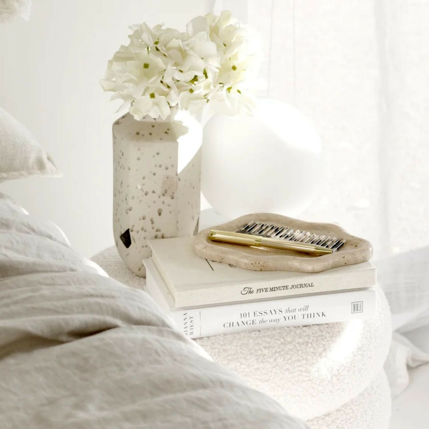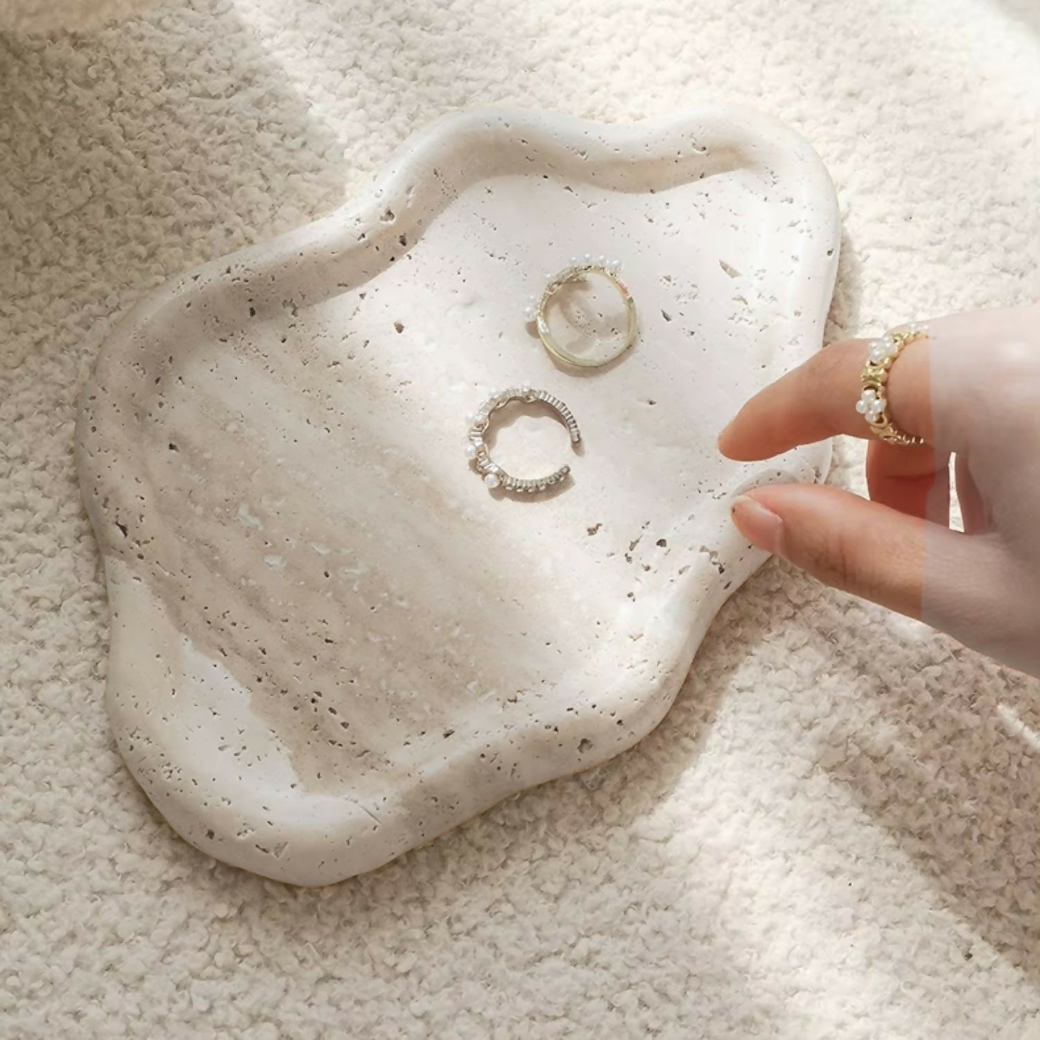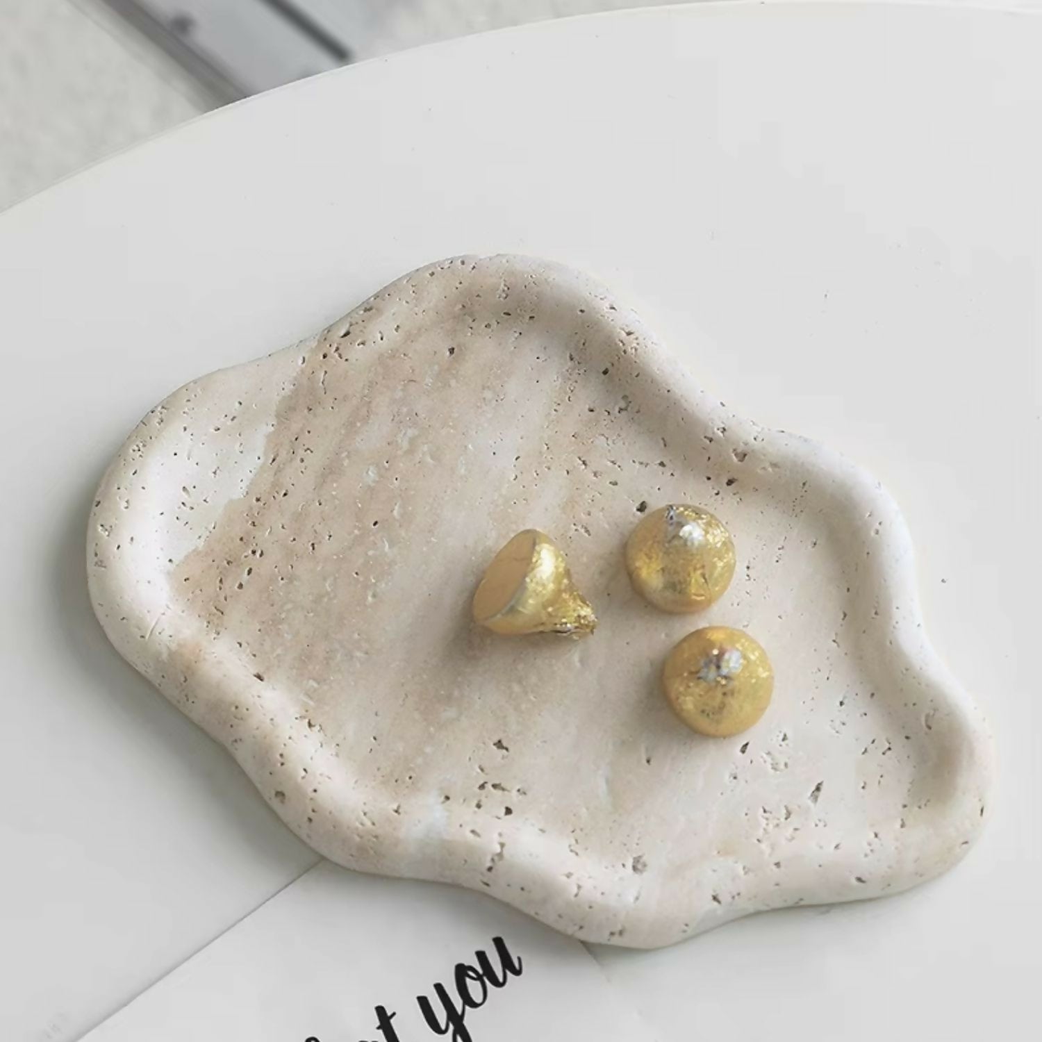 La Bandeja de Piedra Irregular Cloud Travertino es una pieza decorativa única que destaca por su diseño orgánico y contemporáneo. Su silueta irregular con bordes redondeados tipo nube aporta suavidad visual, mientras que su borde grueso ofrece mayor seguridad, evitando que pequeños objetos se deslicen o derramen.