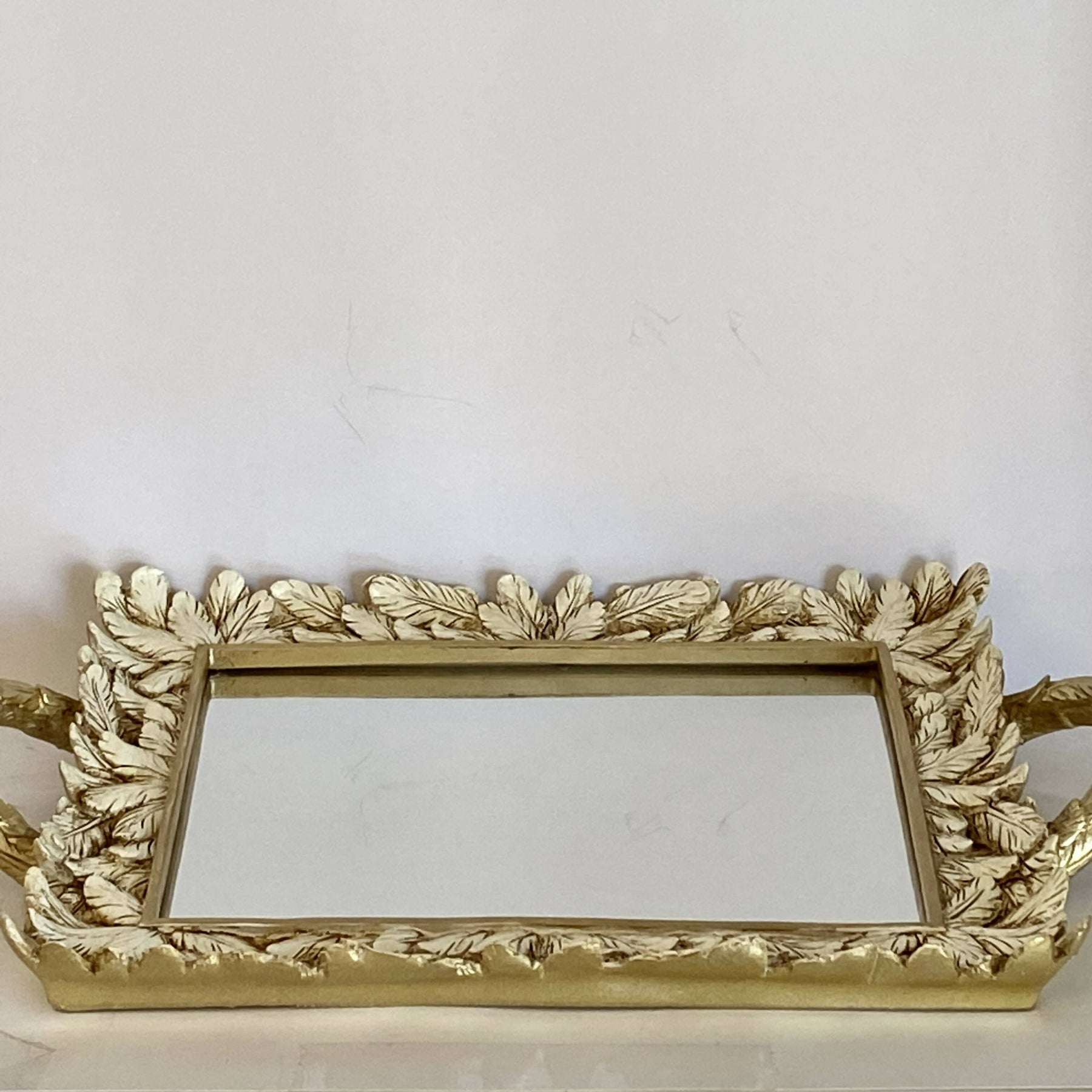 BANDEJA DISEÑO DE HOJAS Y ESPEJO
