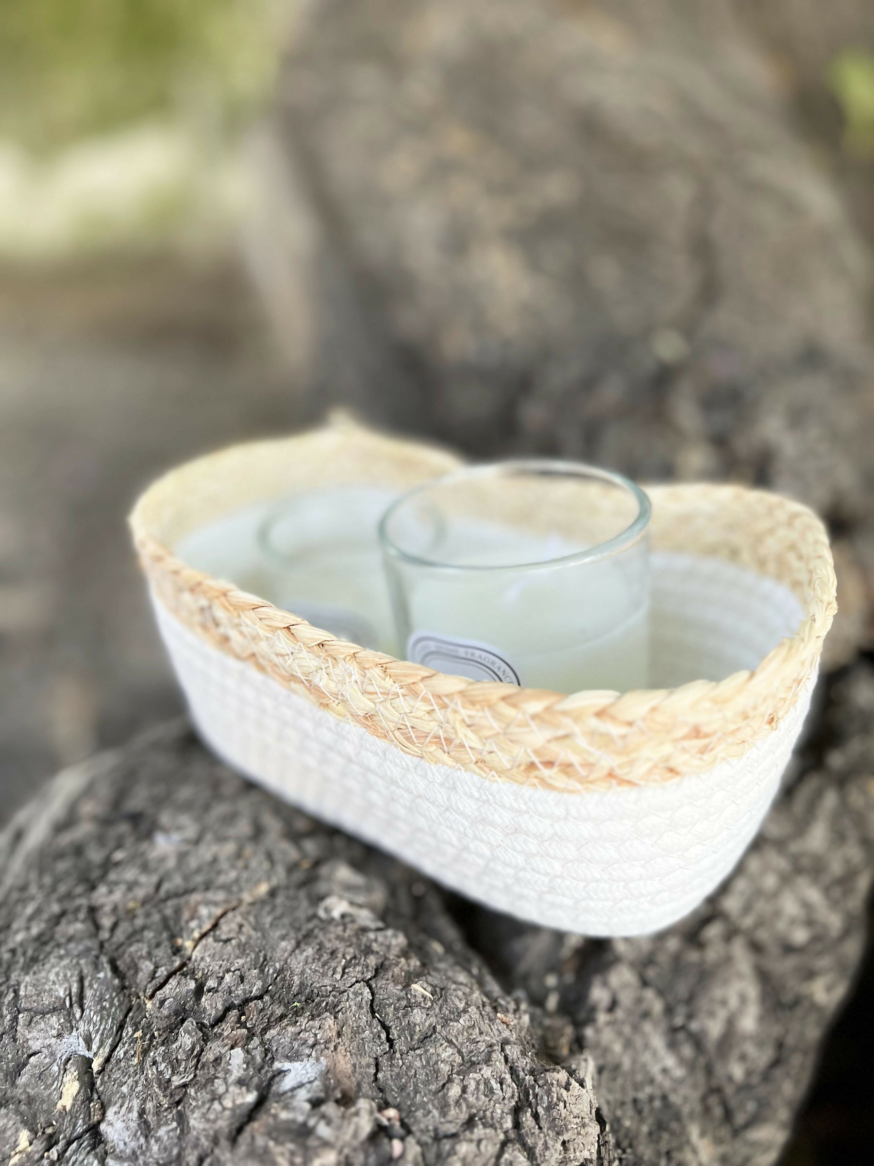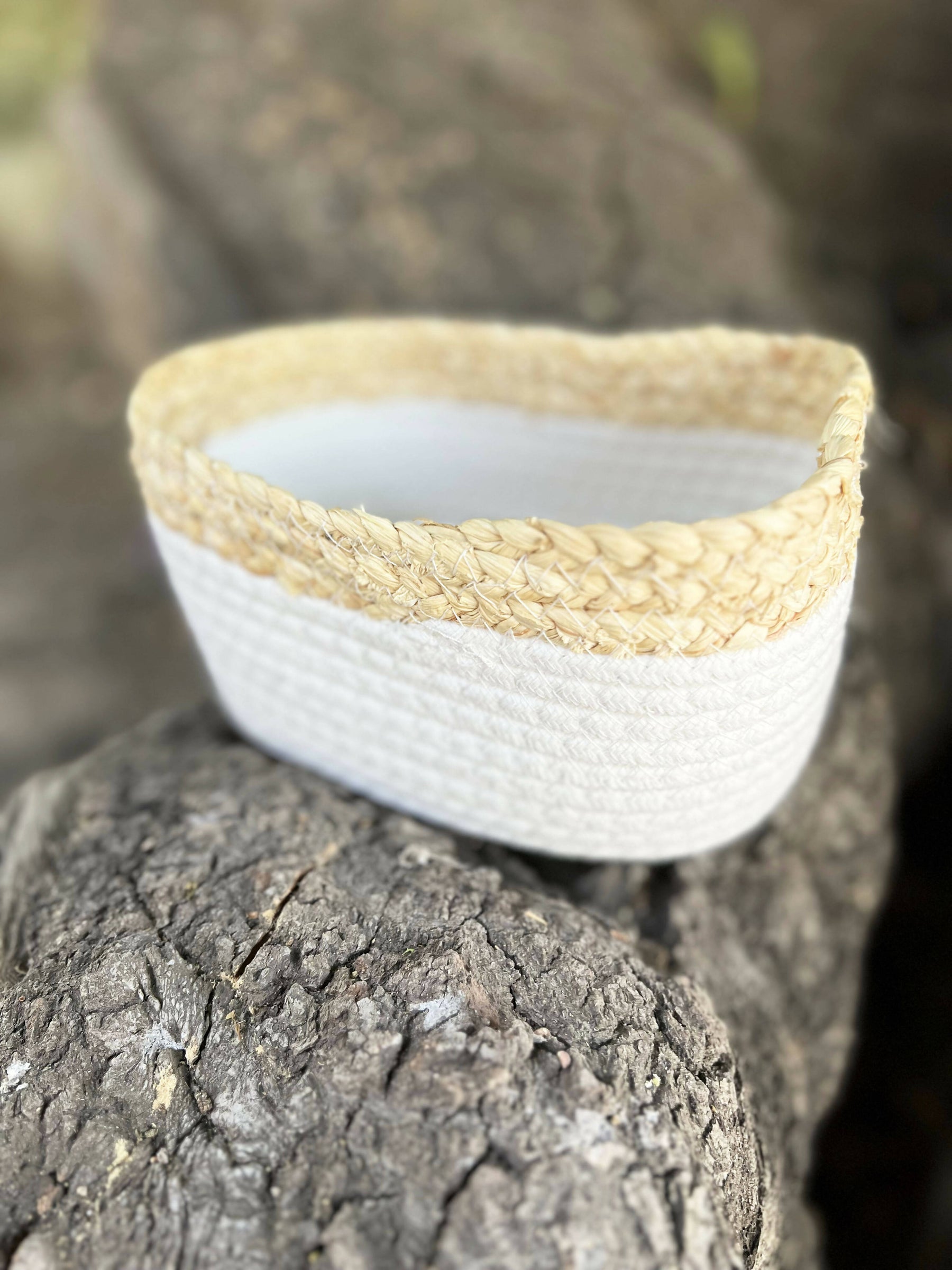 La combinación del color blanco con la fibra natural le da al canasto una apariencia orgánica y se integra fácilmente en diferentes estilos de decoración. El tono neutro combina bien con una variedad de paletas de colores, lo que te permite usarlo en cualquier ambiente de tu hogar.