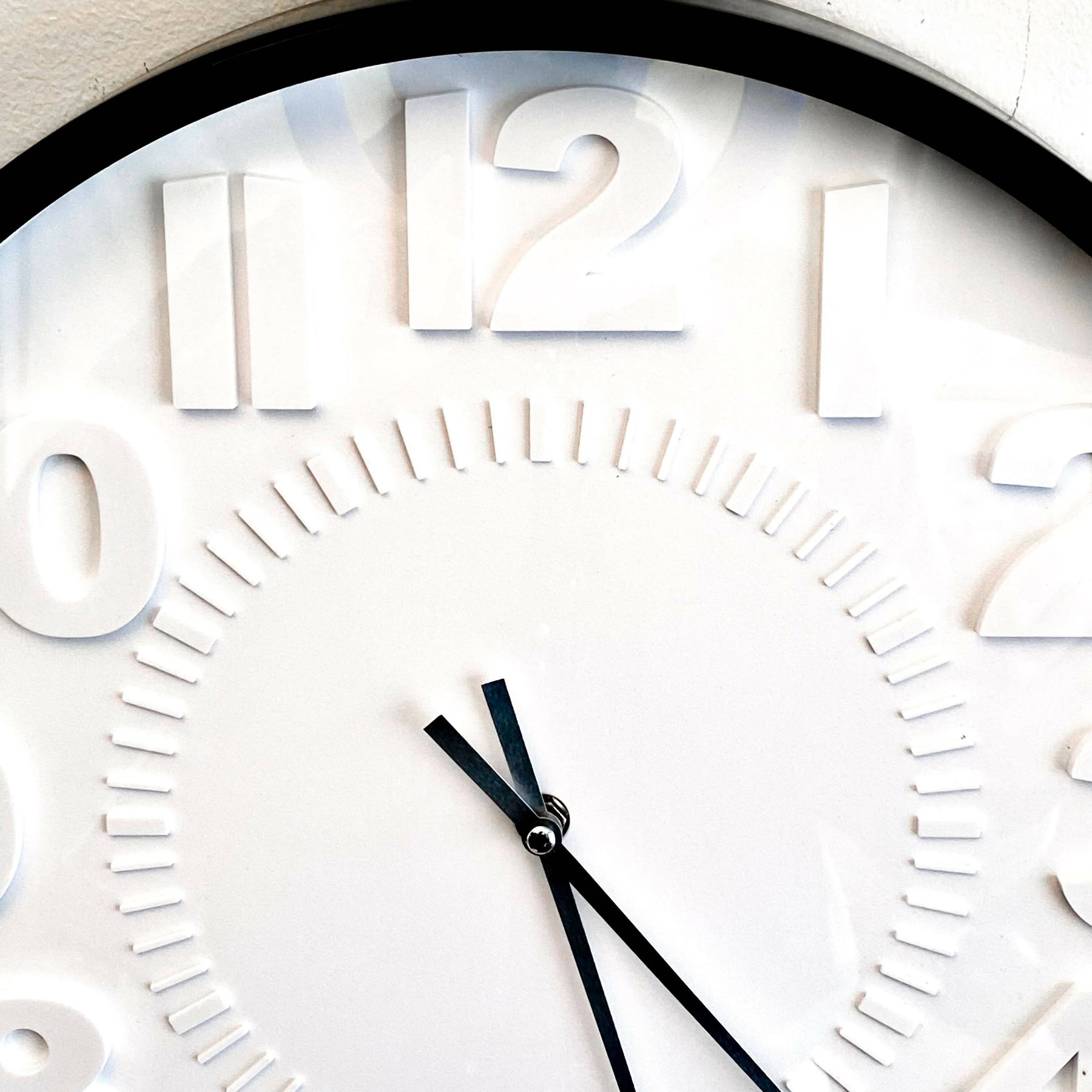 RELOJ DE PARED NEGRO Y ESFERA BLANCA