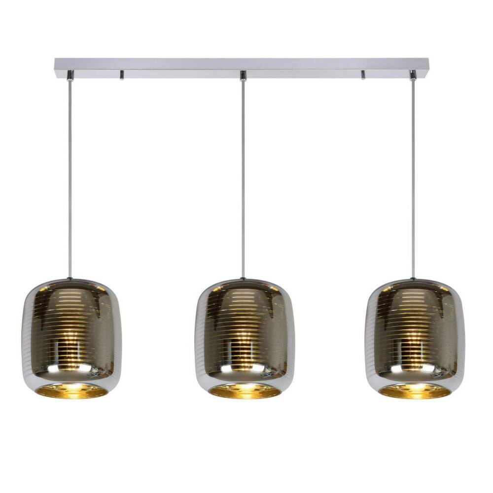 Con esta lámpara se lucirá como en casa encima de la mesa del comedor o en el salón. Las bombillas se pueden ajustar en altura, lo que le permite decidir exactamente en qué brillan. Además, los tonos claros proyectan un brillo cálido en su espacio vital, gracias al patrón de rayas en el vidrio cromado. Puede conectar fácilmente a un atenuador para determinar simplemente el estado de ánimo en su hogar.