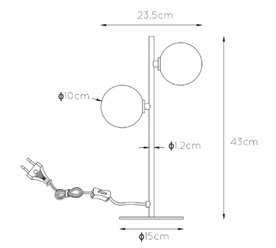 Esta lámpara tiene un aspecto retro, entre otras cosas, a la elección de materiales de alta calidad: acero de alta calidad y vidrio real dan forma a esta lujosa lámpara. Los dos puntos de luz están unidos a diferentes alturas a la elegante base de acero. Las esferas perfectas se colocan a 180 ° entre sí. A pesar de la diferencia de altura, irradia un equilibrio natural. Desde el núcleo de las esferas de vidrio, las lámparas difunden su agradable resplandor en su interior contemporáneo o rural.