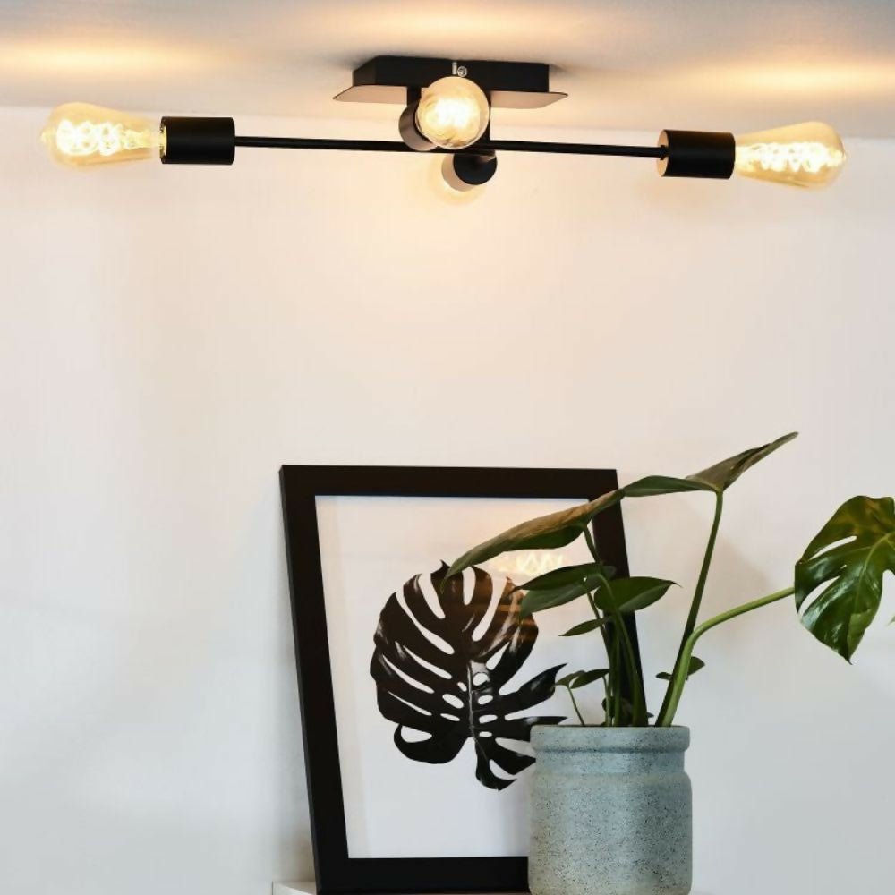 Este plafón de metal de alta gama tiene cuatro ampolletas, una para cada dirección cardinal permitirá entregar luminosidad en 360º. E l diseño elegante y minimalista le da un toque moderno a su cocina, sala de estar o dormitorio. Las ampolletas de filamento resaltan lo mejor de este diseño creativo, por lo que se recomienda su uso.