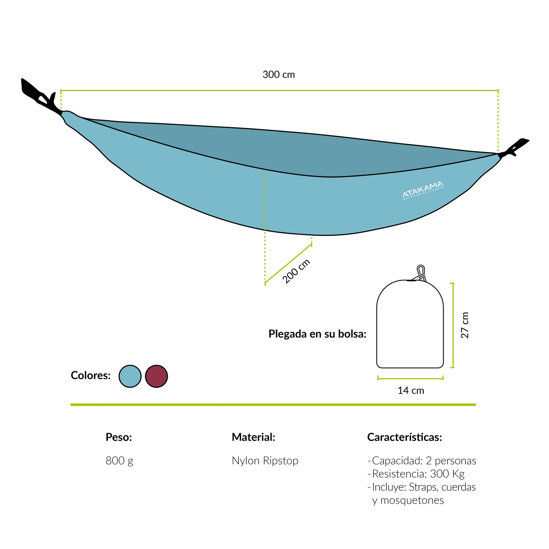 Comodidad donde tú quieras, relajo portátil. Estas hamacas ligeras y compactas son un infaltable en tu equipamiento de camping para llevar a cualquier lugar. Son de muy fácil armado gracias a las cintas de anclaje ajustables. "Compartir es Vivir"