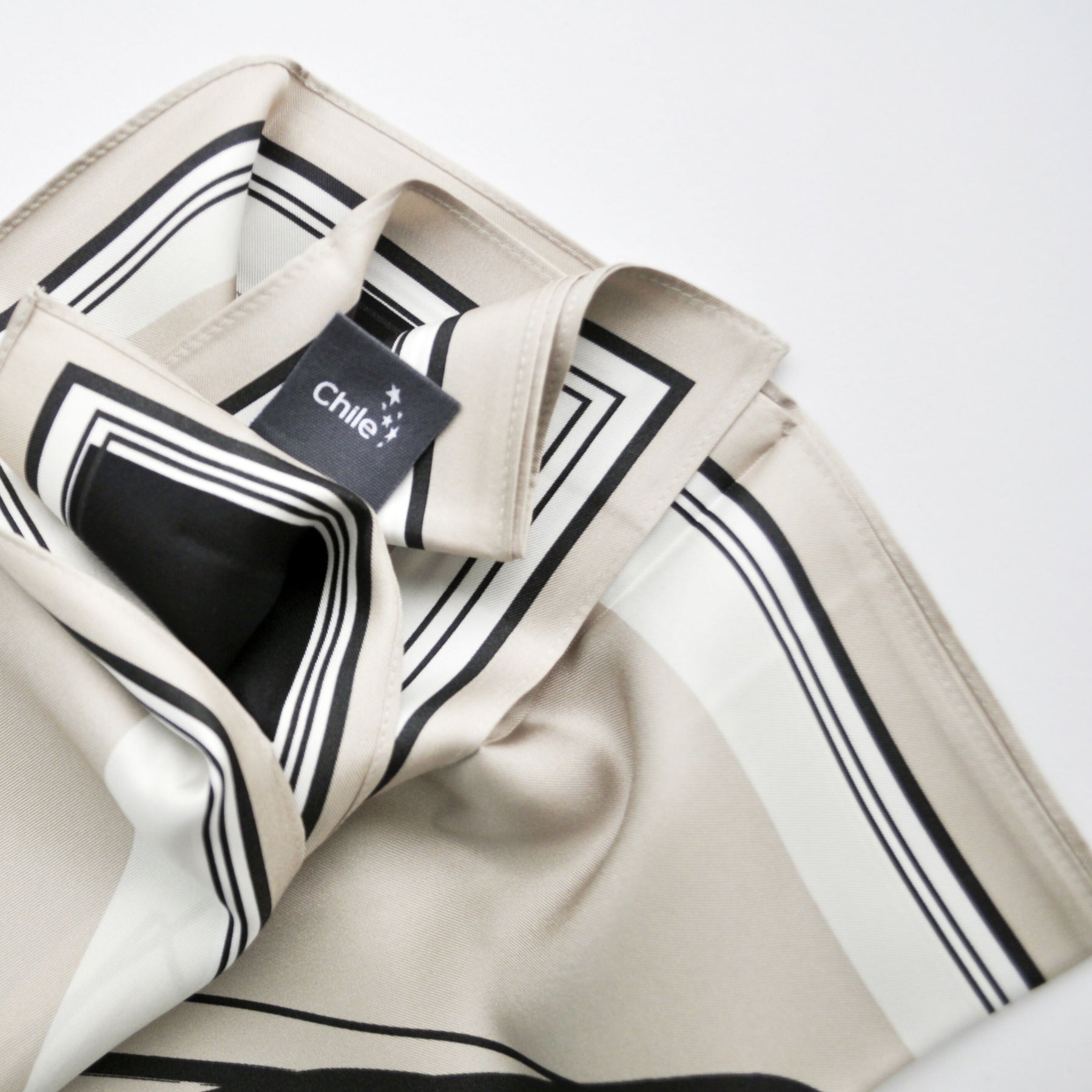 Estandarte de la textilería ancestral de Chile y la expresión de una belleza potente y de una feminidad carismática, la bufanda refleja la memoria visual de los pueblos originarios de Chile. La de una creación que se renueva sin cesar, la de una emoción que no conoce límites, la de un gesto único y de una historia.