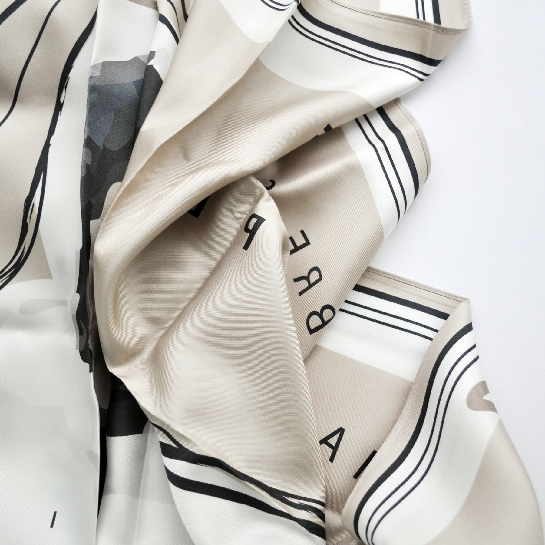 Sumérgete en el arte ancestral con esta bufanda de seda, inspirada en los símbolos del pueblo Mapuche. Cada trazo evoca una historia, una cosmovisión, un vínculo con la tierra y sus ciclos.