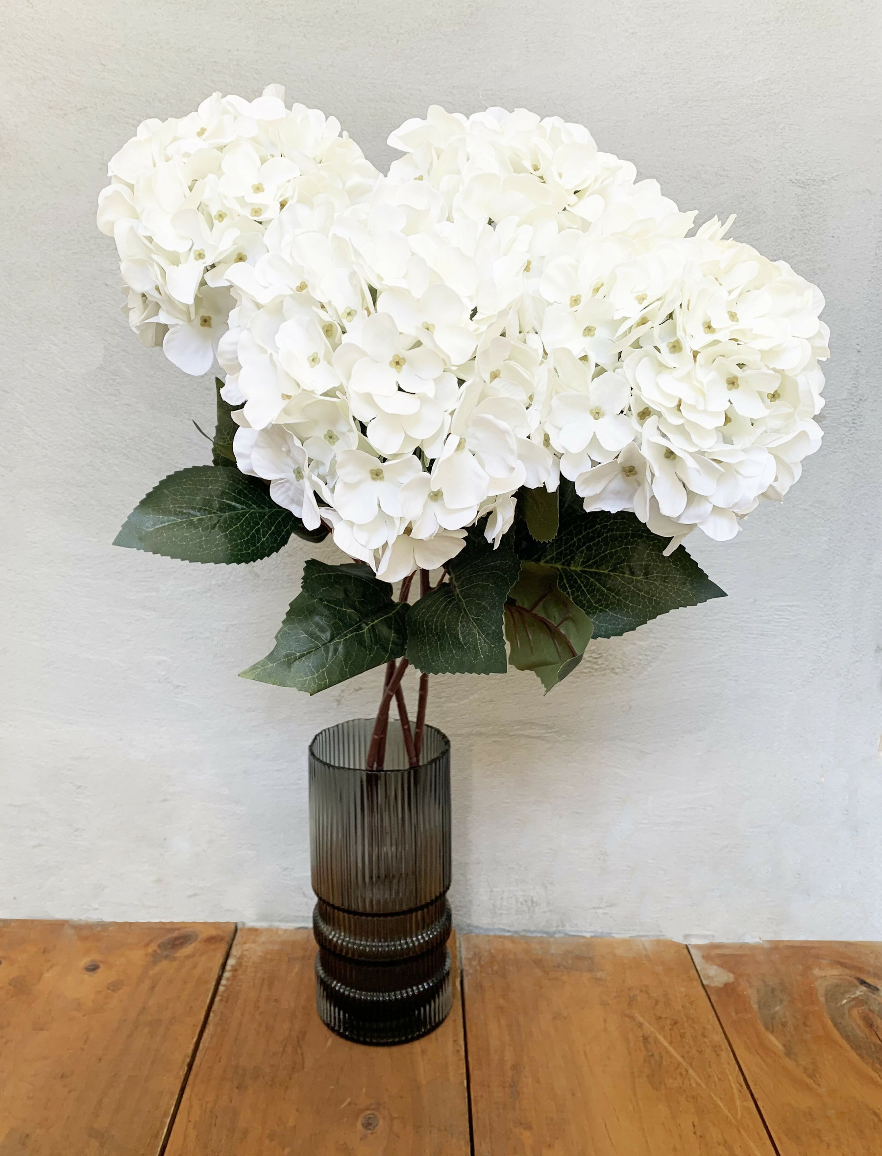 Rama de hortensia artificial de color blanco. Están diseñadas para parecerse a las flores reales y proporcionar un aspecto natural a tu espacio.