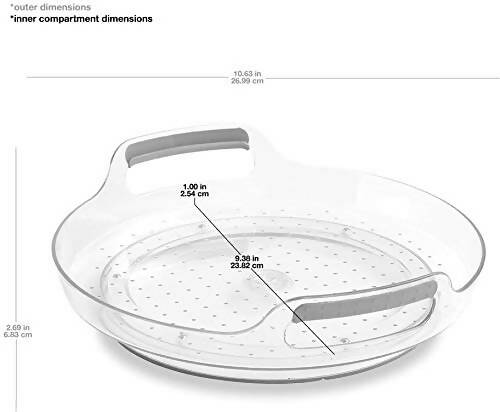 Giros para un fácil acceso|la base antideslizante evita el deslizamiento|asas para portabilidad|el plástico transparente proporciona visibilidad|plástico de alta calidad sin BPA