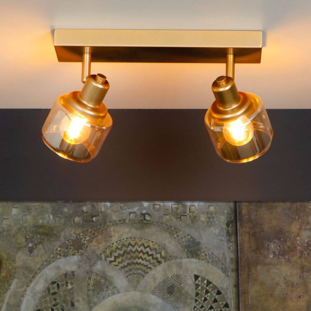Dale un toque de distinción a tu hogar con la BARRA DIRECCIONAL BJORN DORADO 2xE14. Esta luminaria combina la elegancia del dorado con la calidez del cristal ámbar, creando una atmósfera sofisticada y acogedora en cualquier espacio.