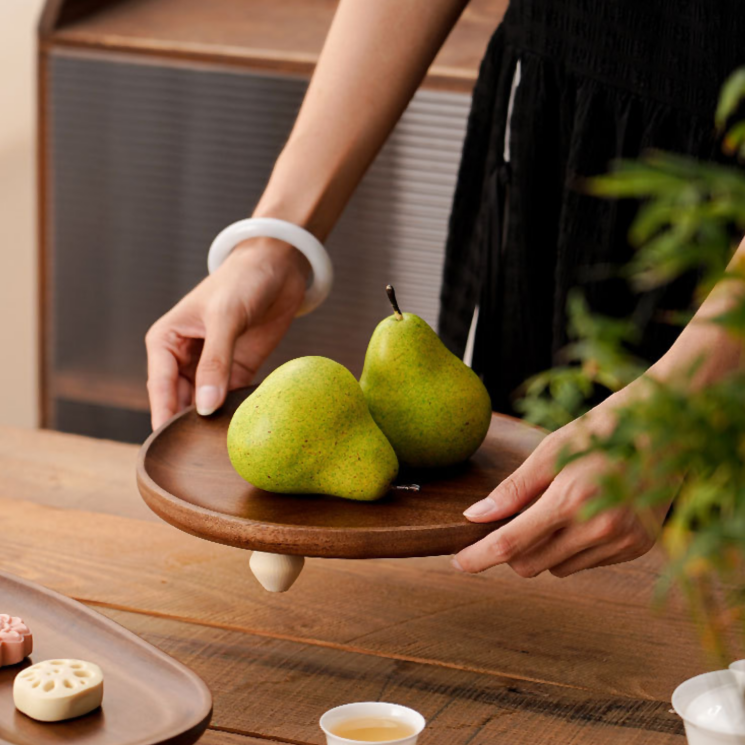 Elaborada en madera pulida con terminaciones elegantes, duraderas, y curvas irregulares que aportan una sensación de artesanía rústica. Este utensilio aportará múltiples soluciones, ya sea organizador para depositar joyas, relojes, dentro del dormitorio, decorativa para apoyar esculturas, o bien para lucir frutas o servir aperitivos. Su borde redondeado lo vuelven una pieza fácil de manipular y evita caídas de la superficie. Cuenta con tres patas estabilizadoras que alzan la bandeja, permitiendo que lo exhibido en ella destaque visualmente.