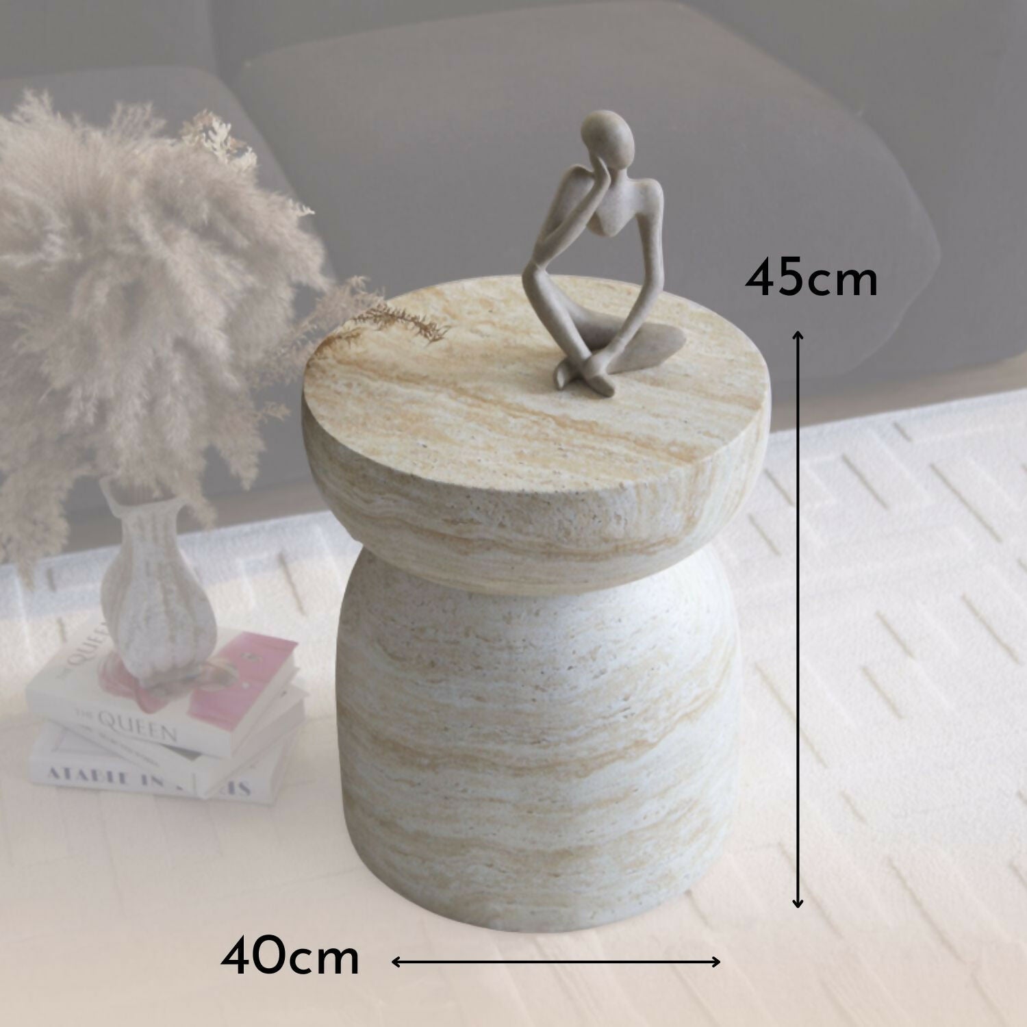 Mesa Lateral Piedra Luna Júpiter Crema – Elegancia Escultural para tu Espacio