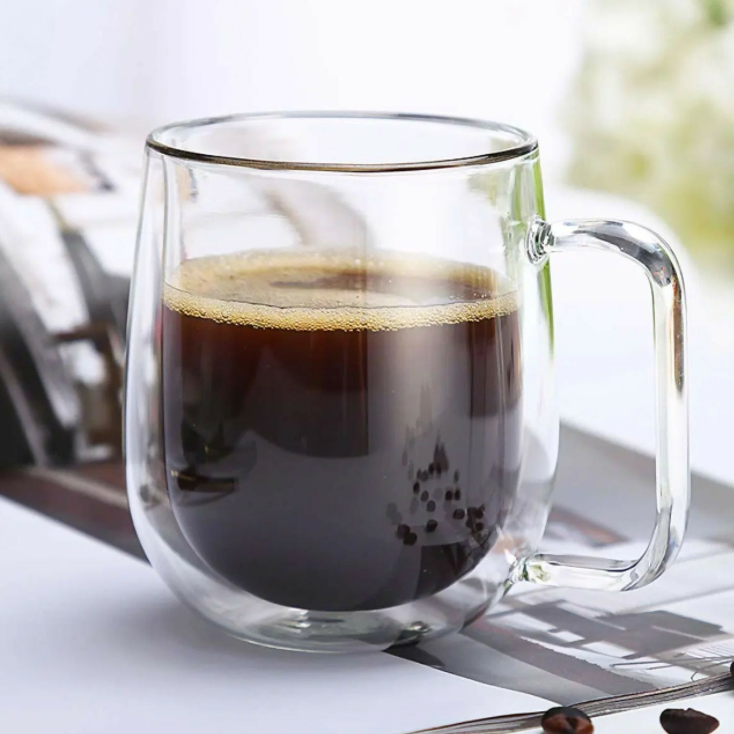 Set de 4 Tazas de Vidrio Doble Pared – 350 ml | Elegancia y Funcionalidad para tu Hogar
