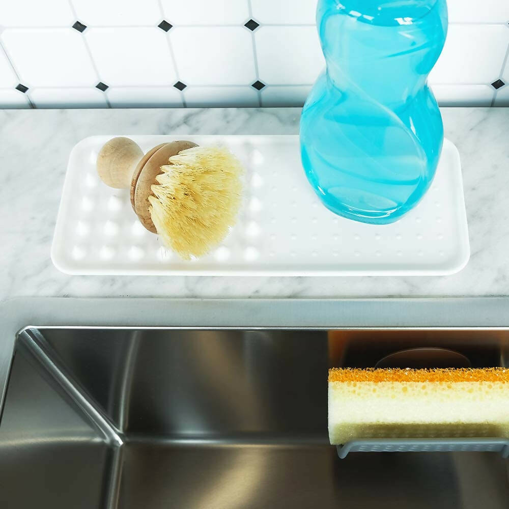 Dile adiós a los lavaplatos desordenados y húmedos con la Bandeja Lavaplatos Madesmart. Su diseño elegante y funcional te ayudará a mantener tus utensilios de limpieza organizados y secos.