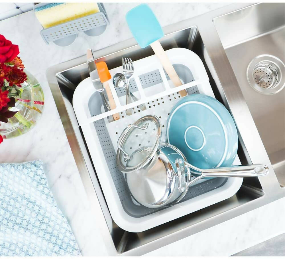 Almacena y organiza los platos de secado|se pliega para un fácil almacenamiento|compartimento separado para utensilios|materiales de alta calidad sin BPA