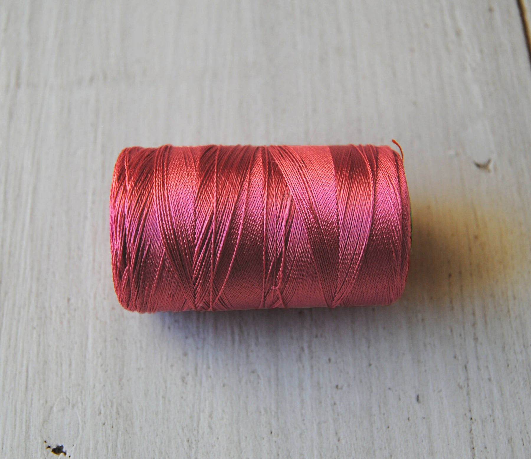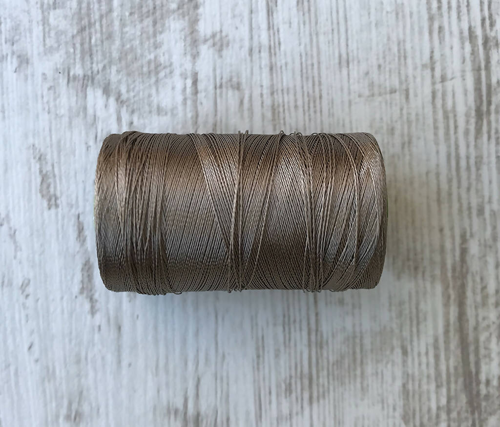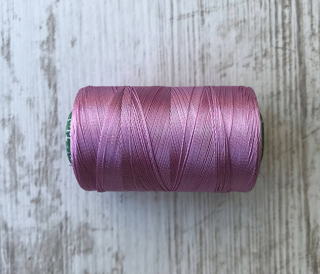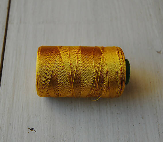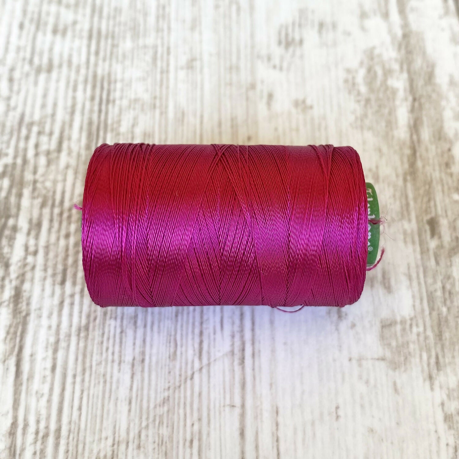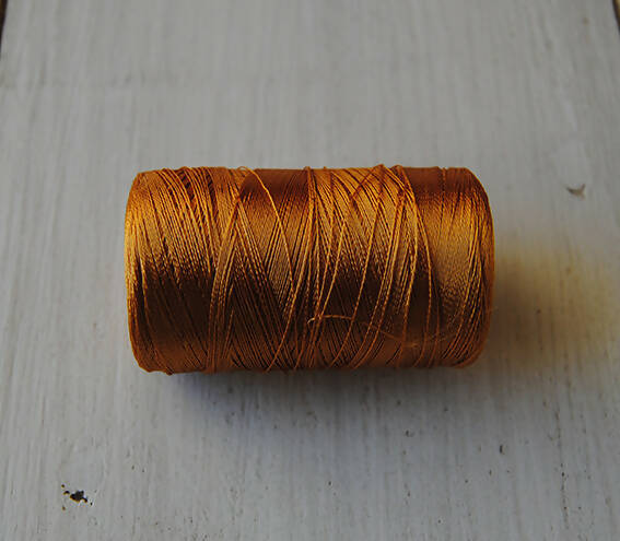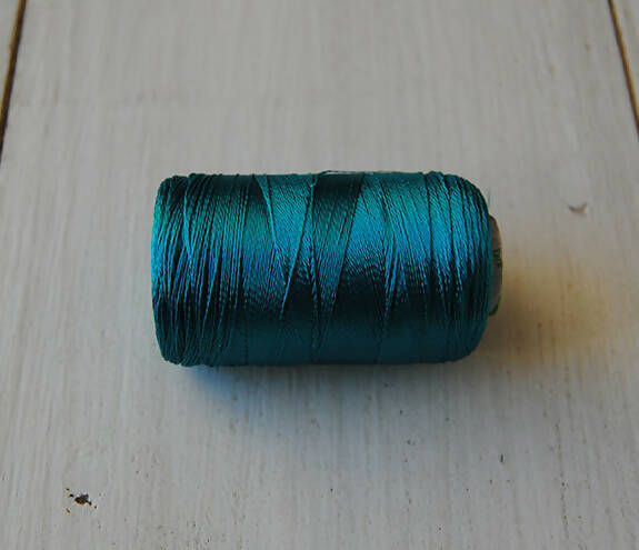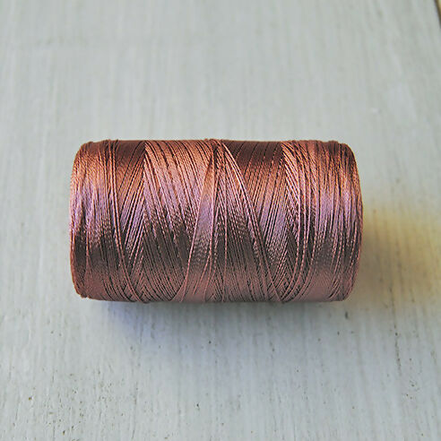 Hilo con look de seda pero de composición 100% viscosa-rayón.