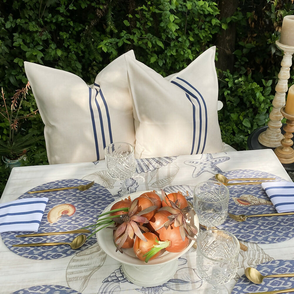 Inspírate renovando con los cojines estampados en Linet natural (Lino con poliéster) 60 x 60 cm. en gran formato