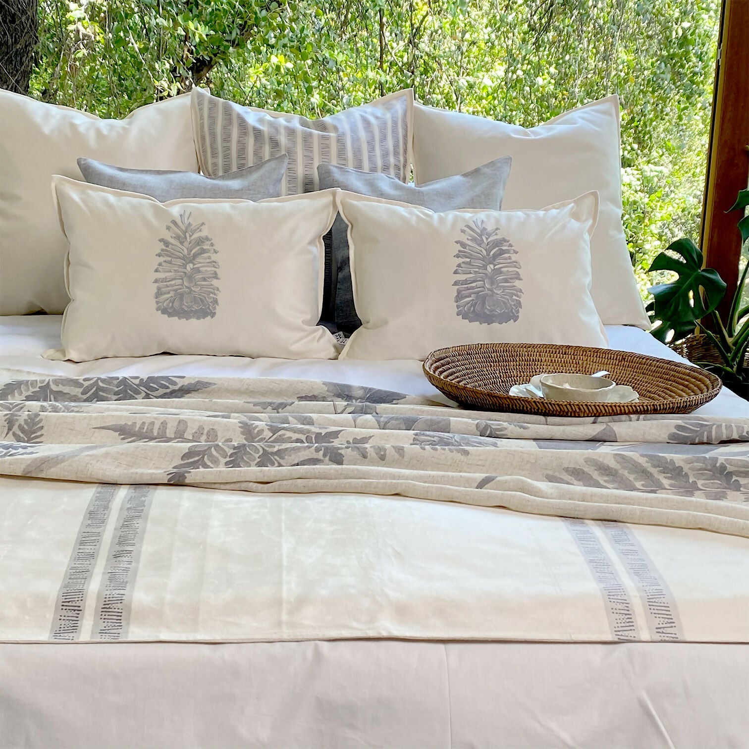 Los cojines de la Colección Bosque son el reflejo de la sofisticación y la belleza. Basada en ilustraciones de flora y aves nativas, estos cojines se verán preciosos en tú cama o en un sofá, junto a la manta estampada de la Colección.