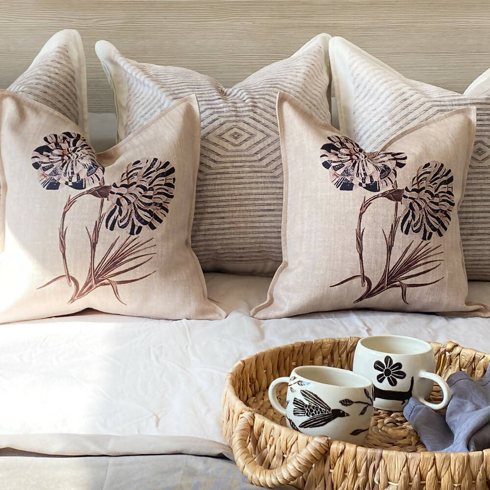 Cojín Clavel en linet estampado 45 x 45 cm.