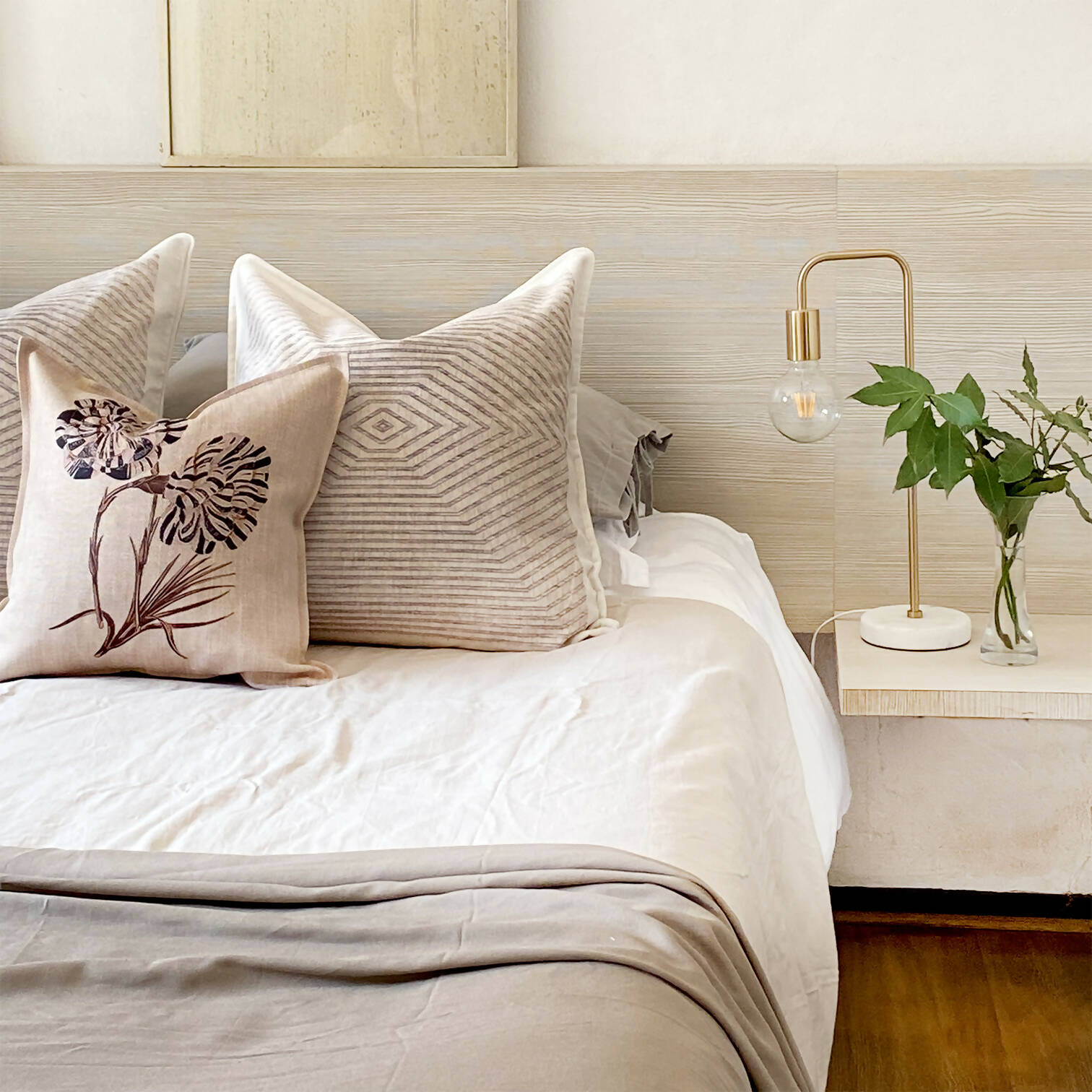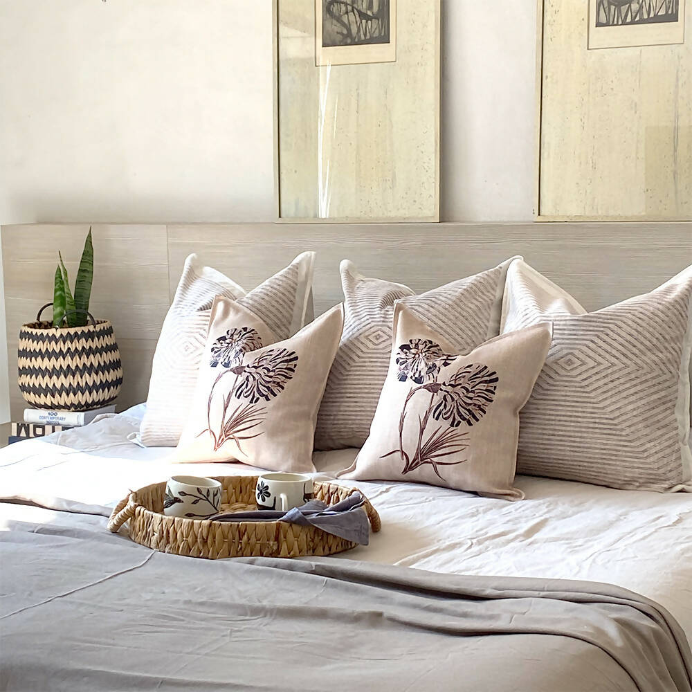 Cojín para renovar tu espacio. Linet (Lino con poliéster) estampado. 45×45 cm. con cierre, relleno desmontable como opción.