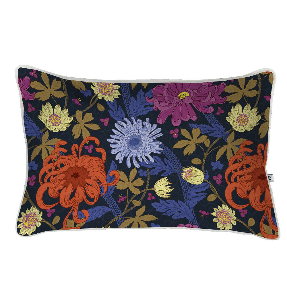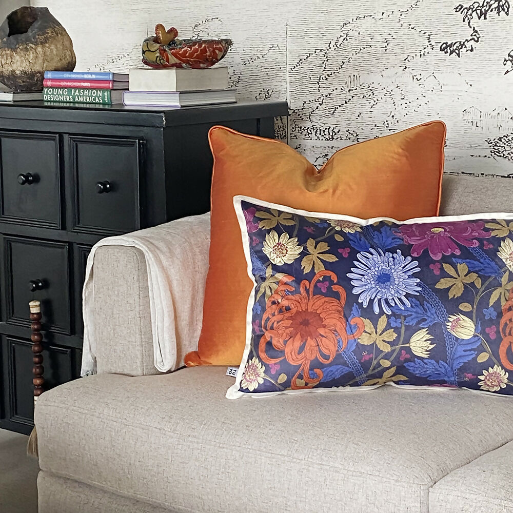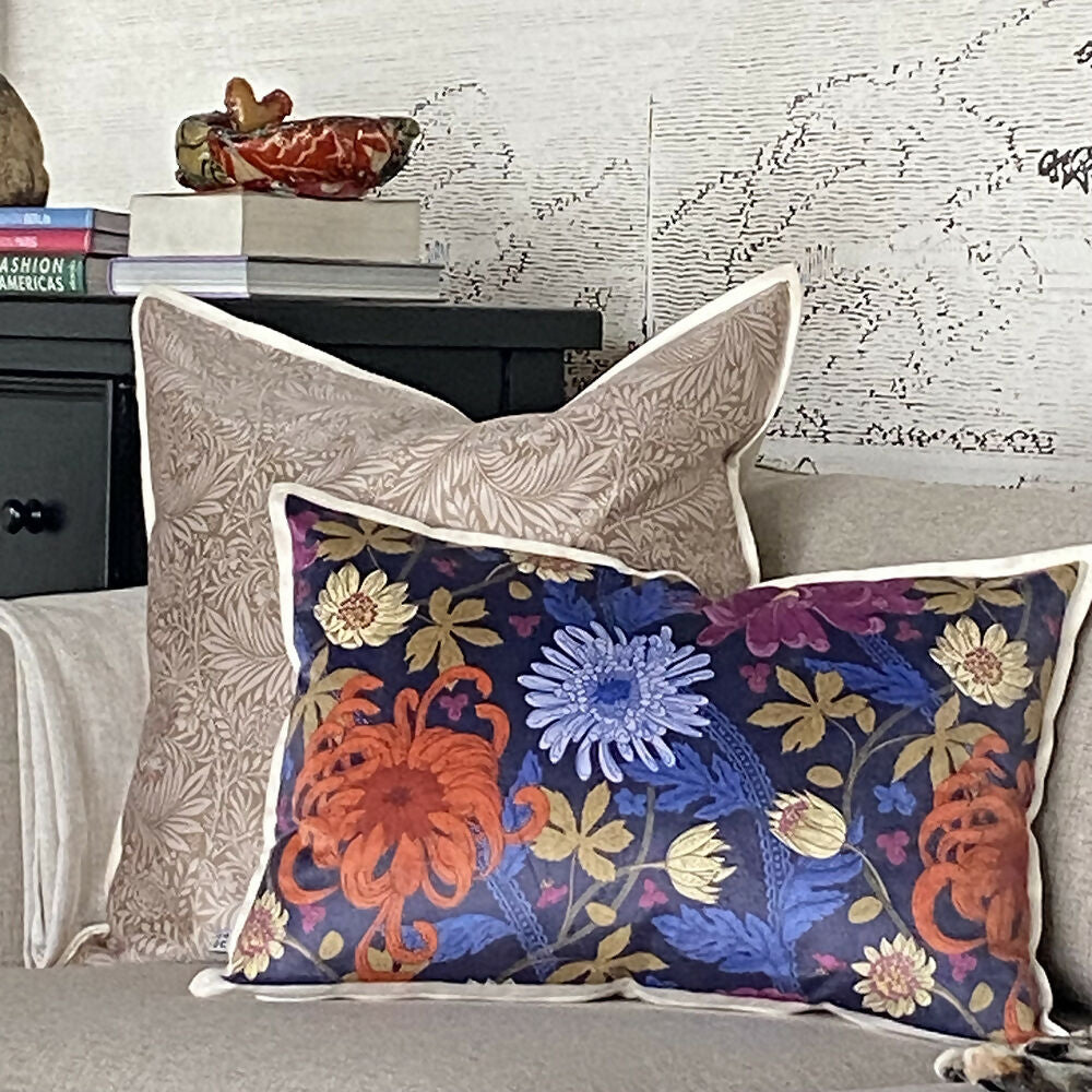 Cojín Fresias-  en velvet crudo, 60×40 cm. estampado.