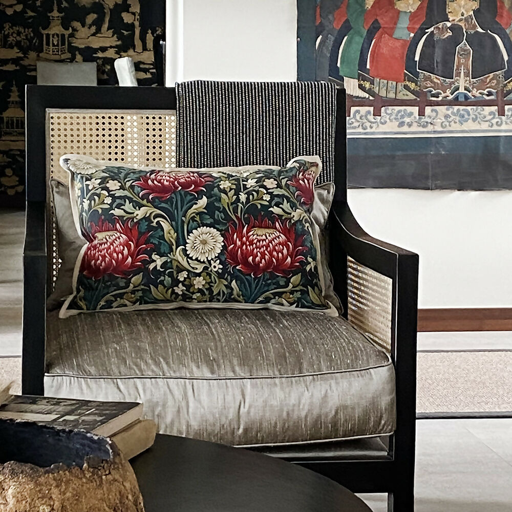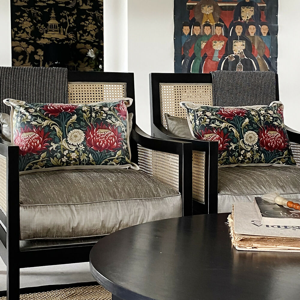 Cojín Estela - en velvet crudo, 60×40 cm. estampado.