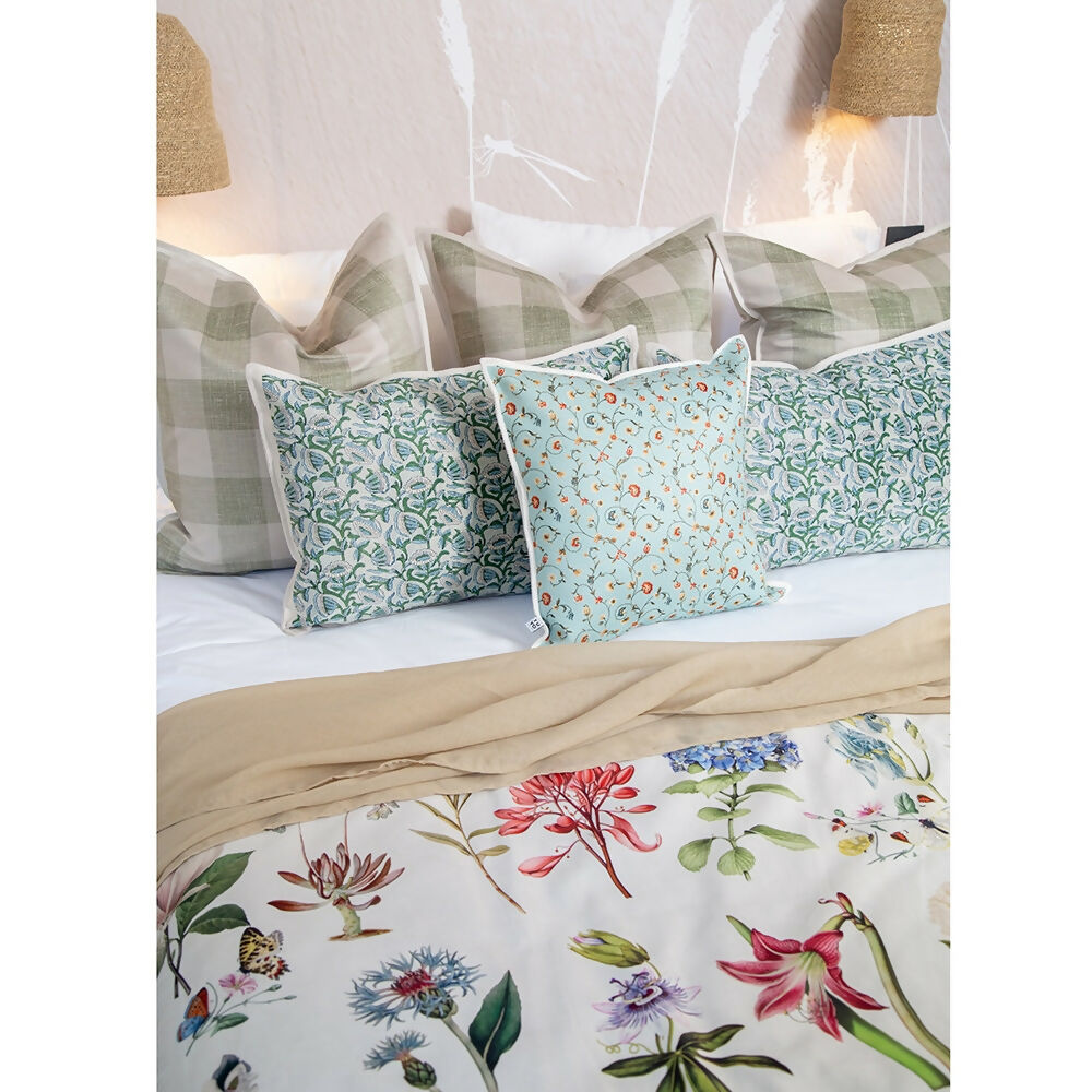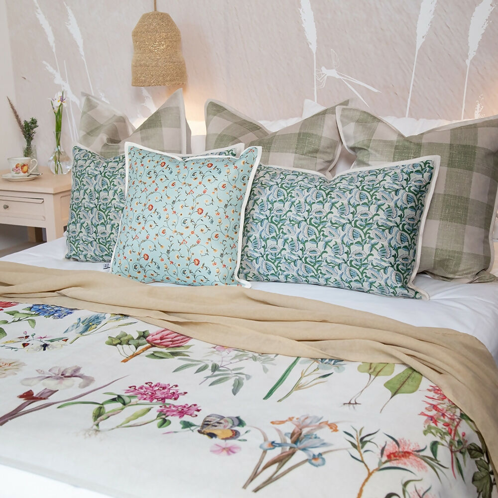 Exquisito cojín en tela afelpada cruda estampada en formato medio. Su suave textura creará de tu espacio un lugar de relajo único. Ideal para sofás o sobre la cama. con cierre, relleno desmontable.
