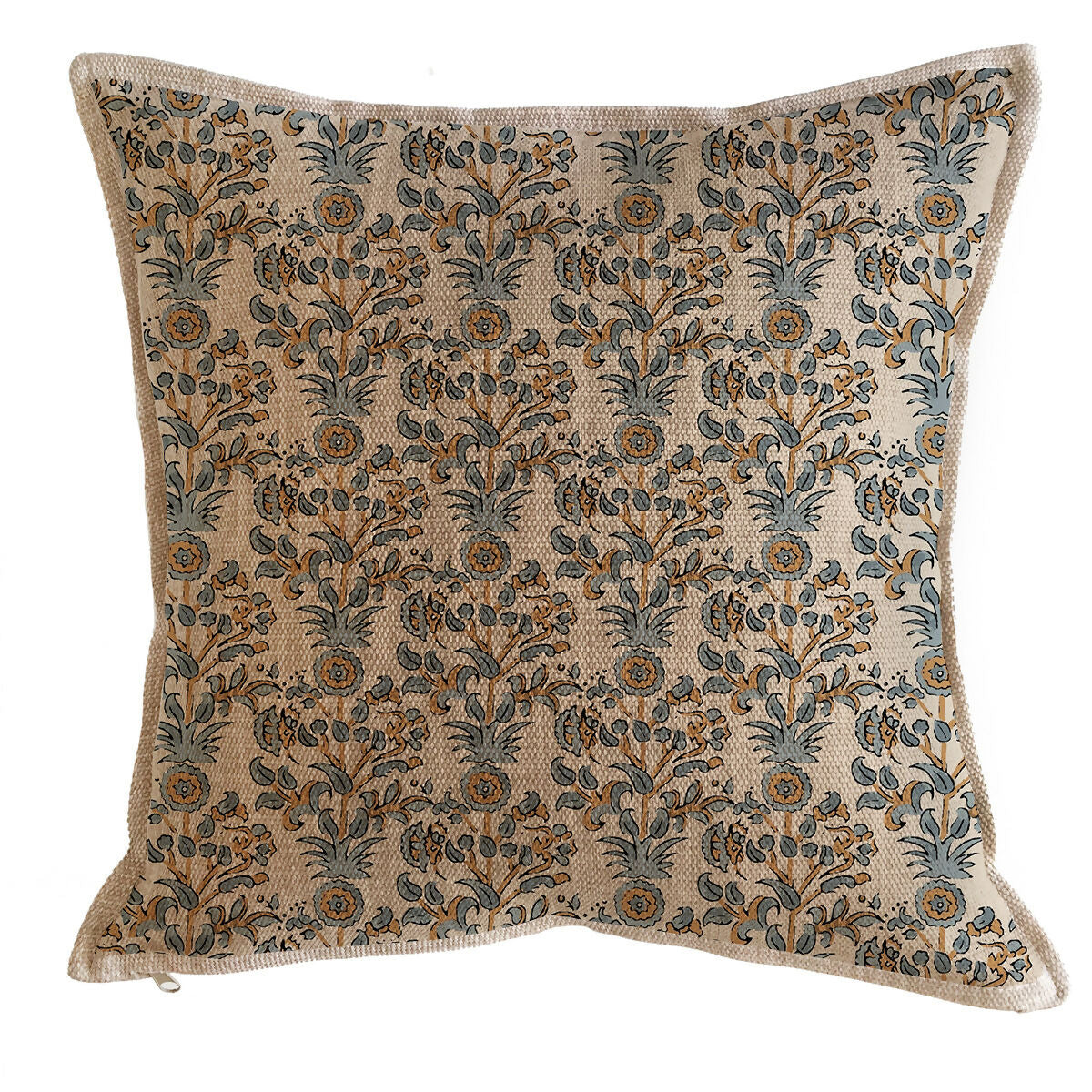Cojín Paraíso 1, en linet arena estampado 45 x 45 cm.