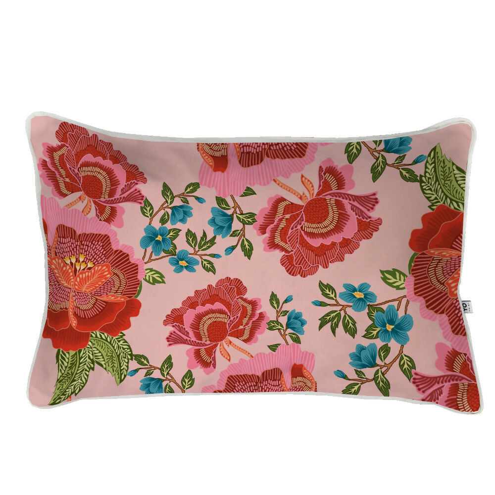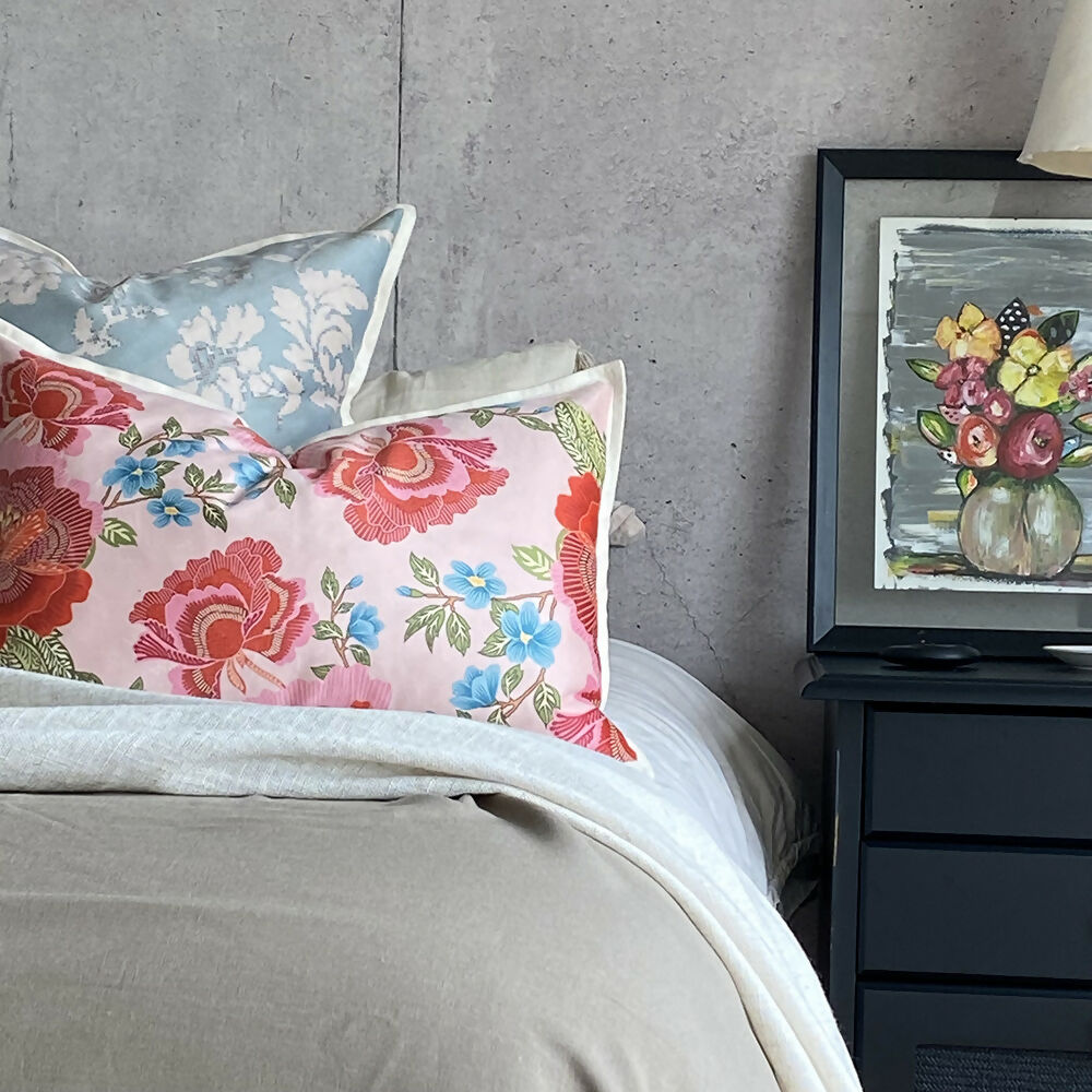 Cojín Renata- en velvet crudo, 60×40 cm. estampado.