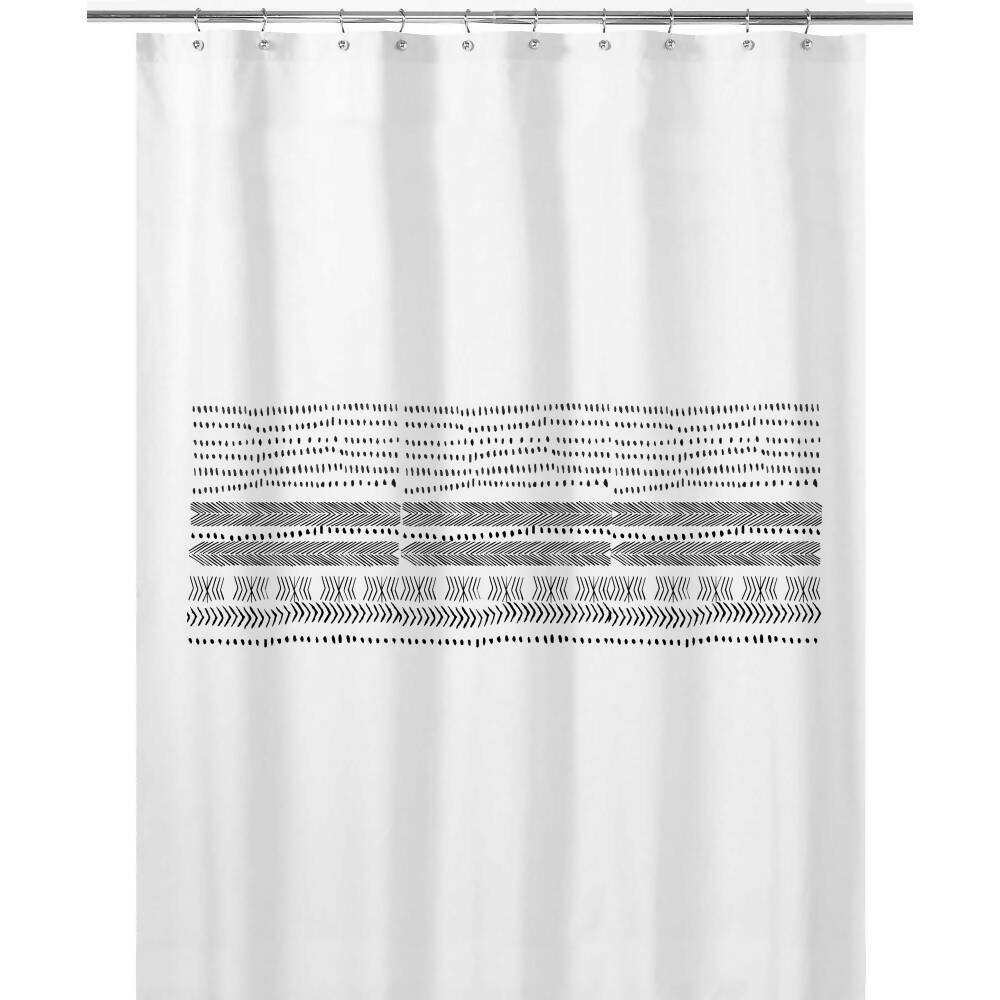 Cortina de Baño Etnica elaborada en algodón blanco 180 x 180 cm.