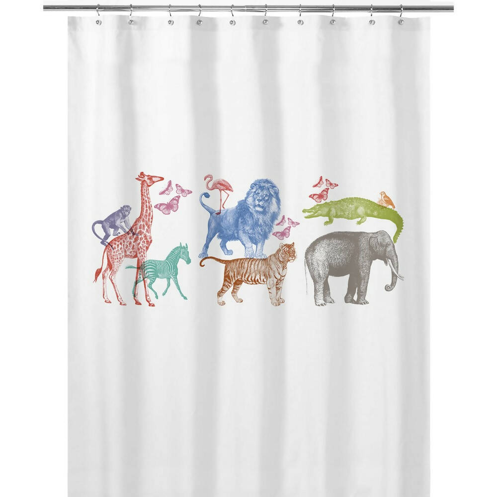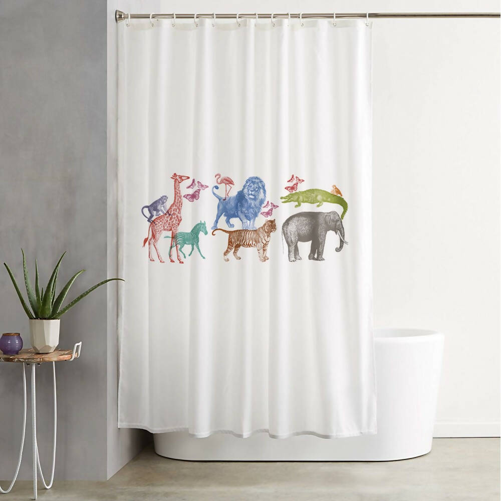 Cortina de Baño Safari elaborada en algodón blanco 180 x 180 cm.
