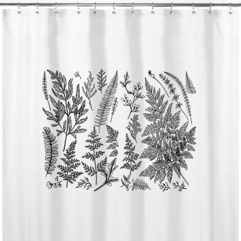 Cortina de Baño silueta Hierbas elaborada en algodón blanco 180 x 180 cm.