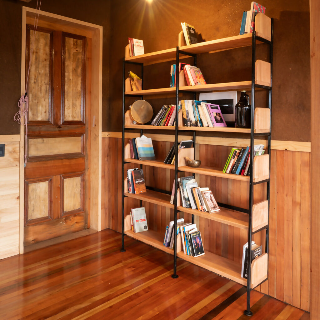 Esta fabricado en fierro y madera nativa.