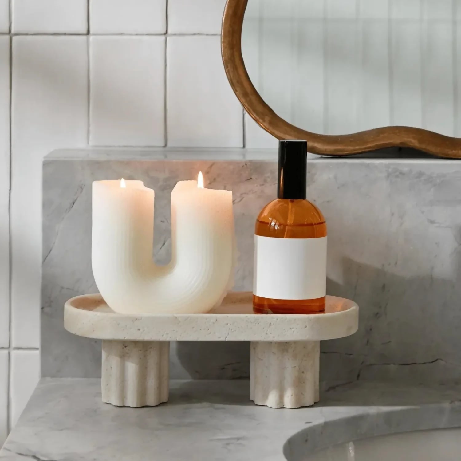 Con un acabado que imita el mármol travertino en tonos beige crema, esta bandeja combina con estilos minimalistas, nórdicos, Japandi y contemporáneos, siendo el complemento decorativo perfecto para crear composiciones equilibradas y modernas