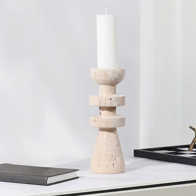 Candelabro Torre Alfil Figura Decorativa Travertino Pequeño