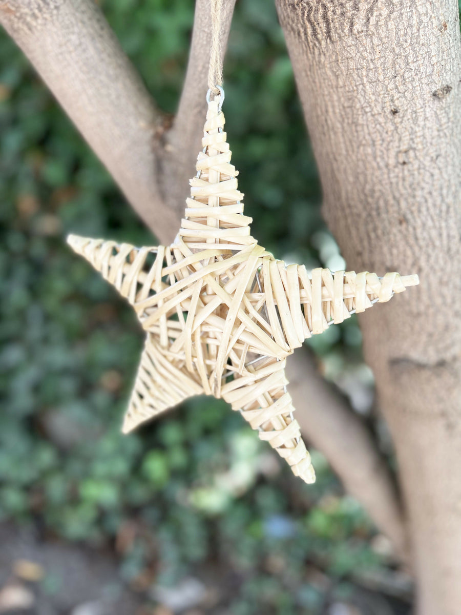 La estrella está fabricado con mimbre, lo que le da un aspecto orgánico y texturizado. La fibra natural es duradera y resistente, asegurando la calidad y longevidad de la estrella.