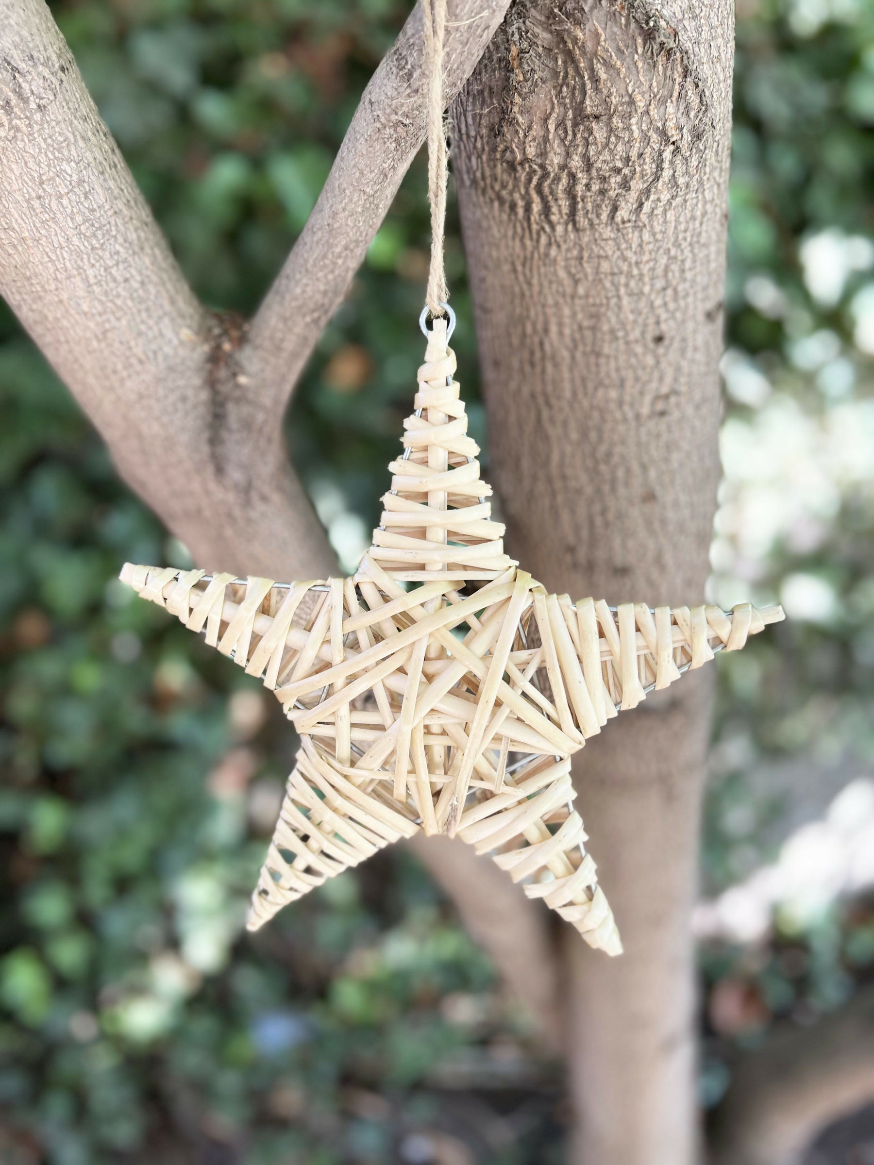 Estrella de fibra natural con colgante de yute es una pieza decorativa encantadora que agrega un toque rústico y acogedor a cualquier espacio.