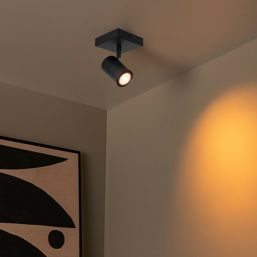 El foco de techo amigo combina un diseño contemporáneo con funcionalidad práctica, esta lámpara encaja perfectamente en interiores modernos. Su marco metálico robusto y el acabado negro mate proporcionan un aspecto atemporal. Gracias a su cabezal giratorio e inclinable, que además se puede ajustar en altura después de la instalación, el Amigo ofrece flexibilidad para iluminación focalizada o acentos ambientales. Compatible con ampolletas LED (GU10) y fácil de conectar a un regulador (no incluido), combina eficiencia energética con versatilidad. Añade un toque de estilo a tu salón, cocina o pasillo con el versátil Foco Direccional Amigo.