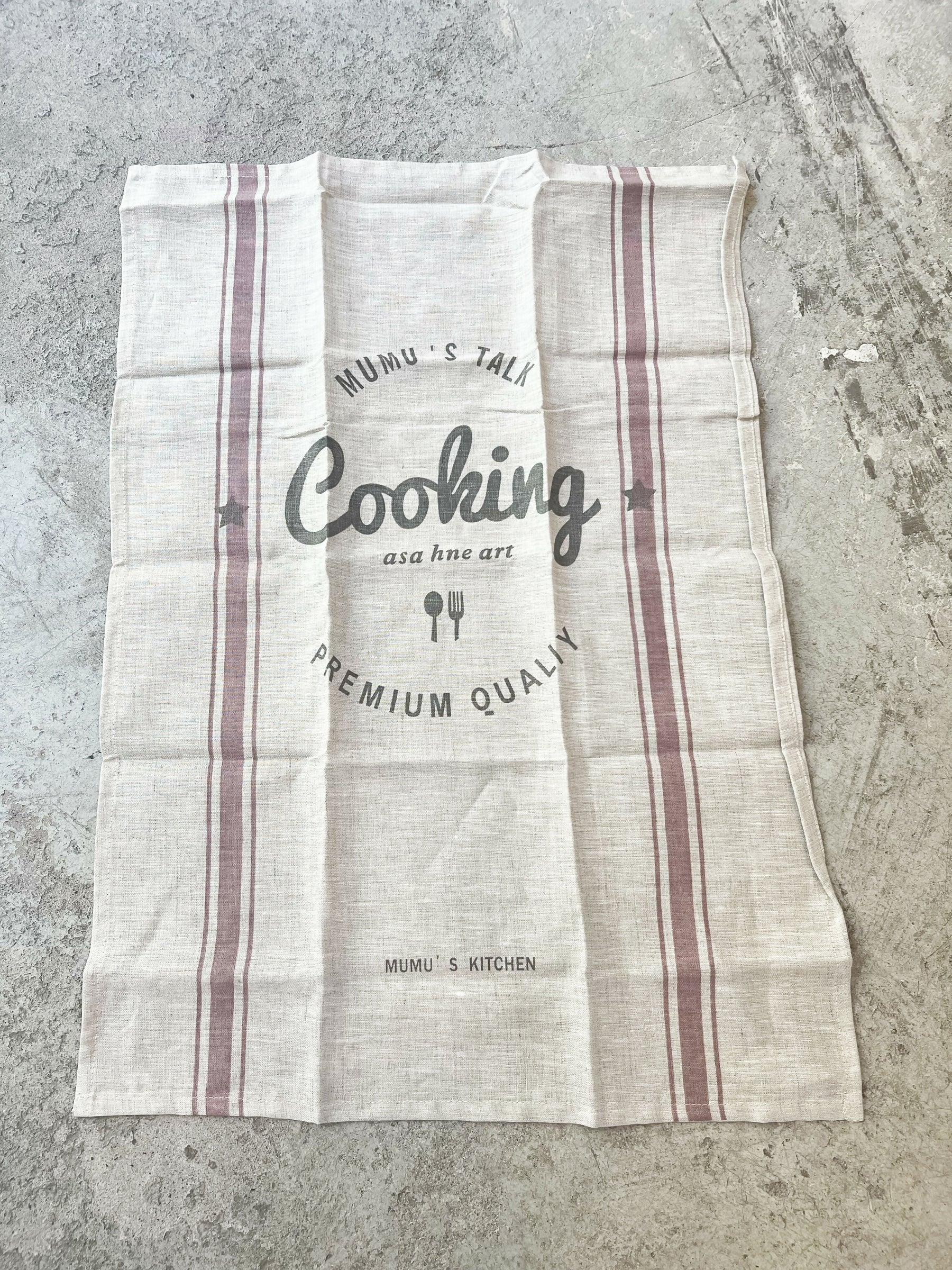 Paño de cocina Cooking de lino sintético en color natural con letras grises es un accesorio práctico y con un diseño moderno, ideal para añadir un toque de estilo rústico y funcionalidad a tu cocina. Este tipo de paño no solo es útil para secar platos o limpiar superficies, sino que también puede servir como un detalle decorativo que resalta en una cocina.