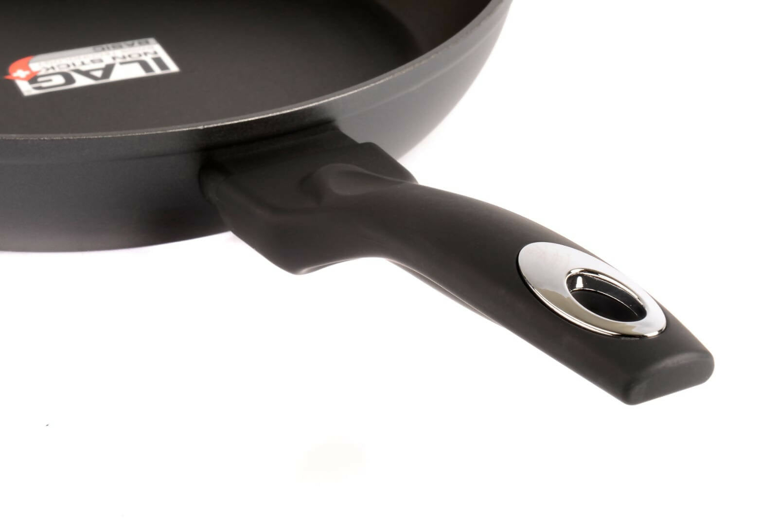 Sartén Inducta 30 cm. Se caracteriza por ser Aluminio forjado y antiadherente de origen Suizo, libre de PFOA,  para no dañar el medio ambiente ni la salud de las personas. Con un exclusivo mango Sotf touch color negro, cuenta con tres capas de alta calidad DURATEK-O, su espesor de 5mm. Utilizar accesorios de madera antiadherente.