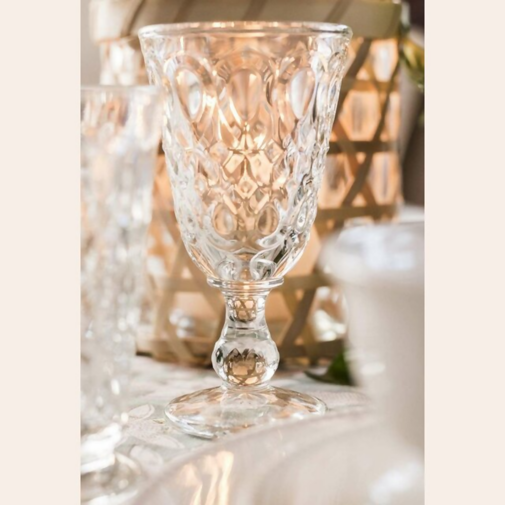 mpresione a todos los invitados con estas brillantes copas de vino decoradas con diseños de lágrimas brillantes que crean interés. Su elegante tallo es resistente y elegante, para una transición perfecta de una cena informal a un entretenimiento elegante.